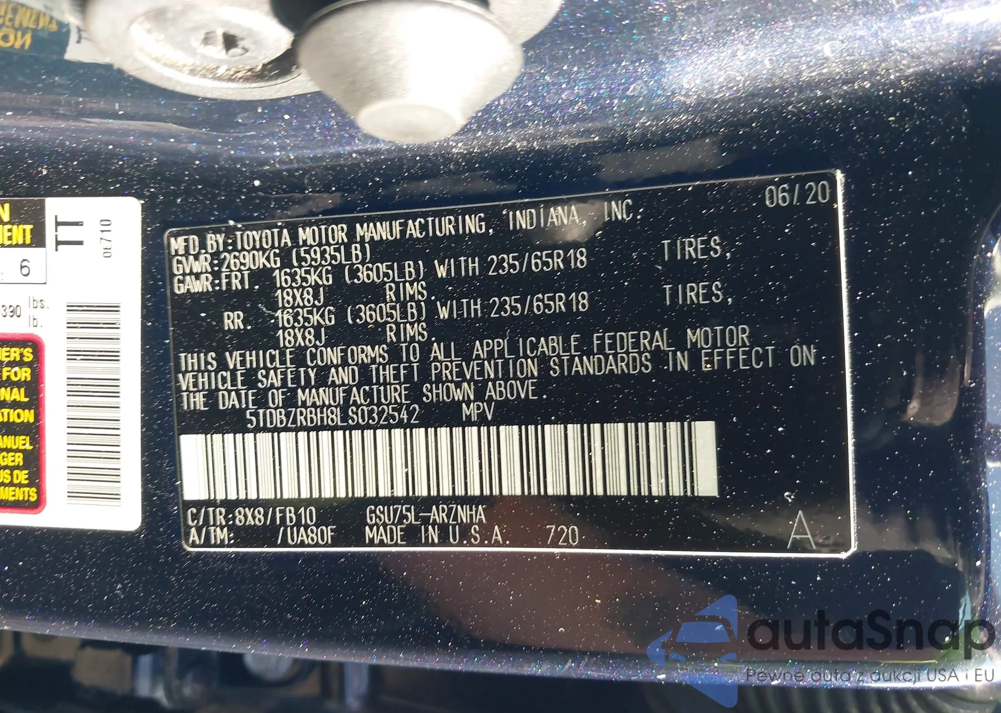LOT: 42964886 VIN: 5TDBZRBH8LS032542