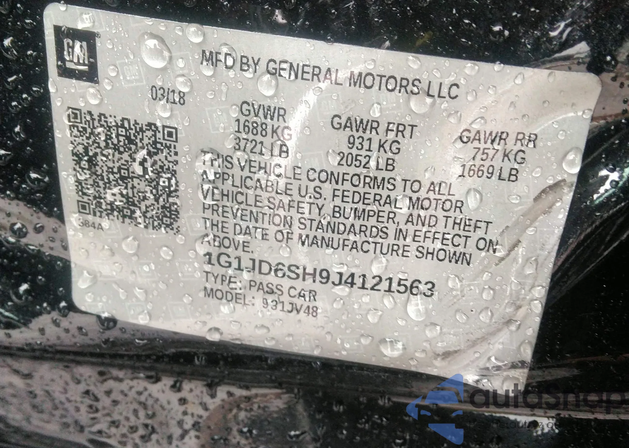 LOT: 42868048 VIN: 1G1JD6SH9J4121563