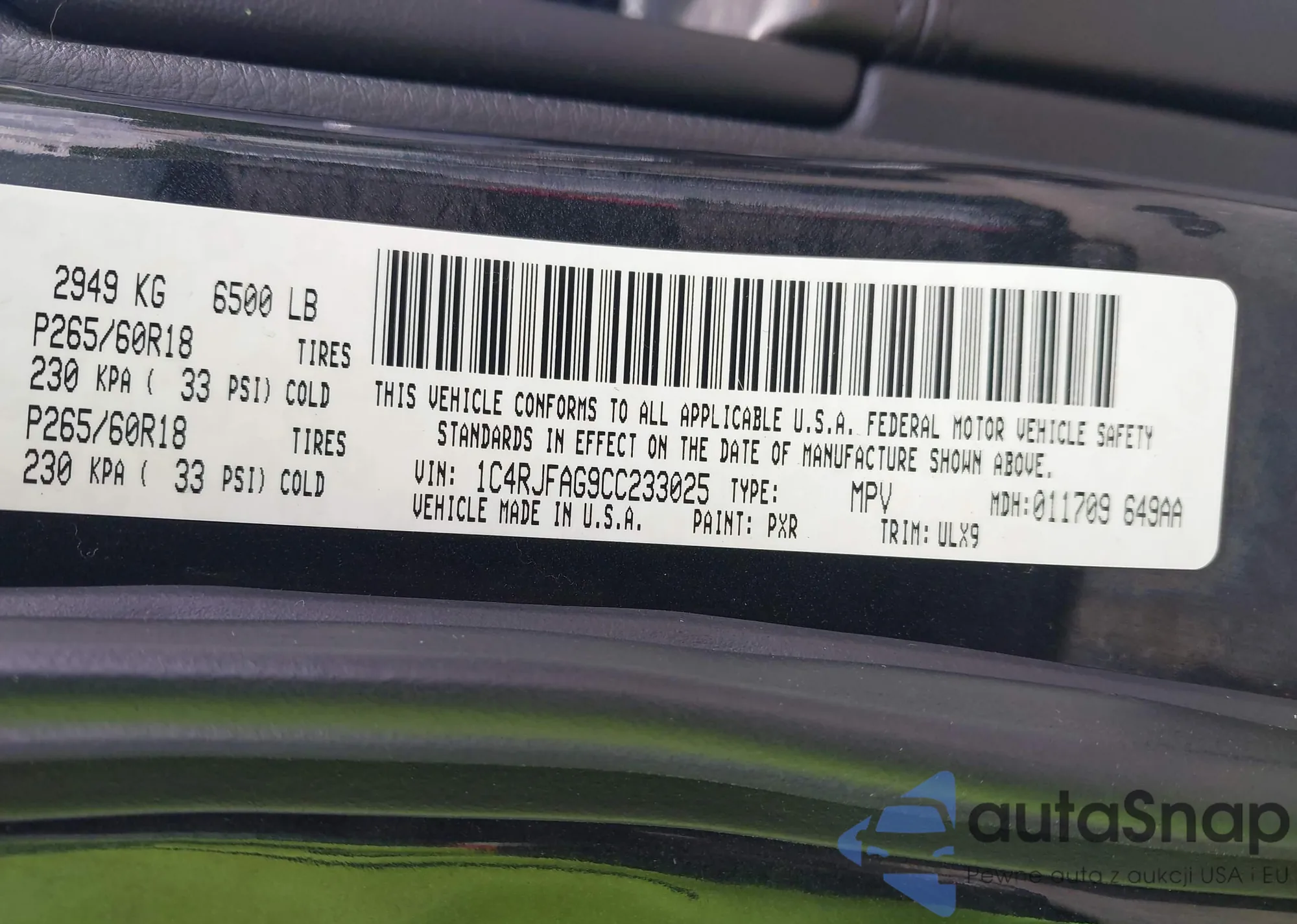 • VIN 1C4RJFAG9CC233025