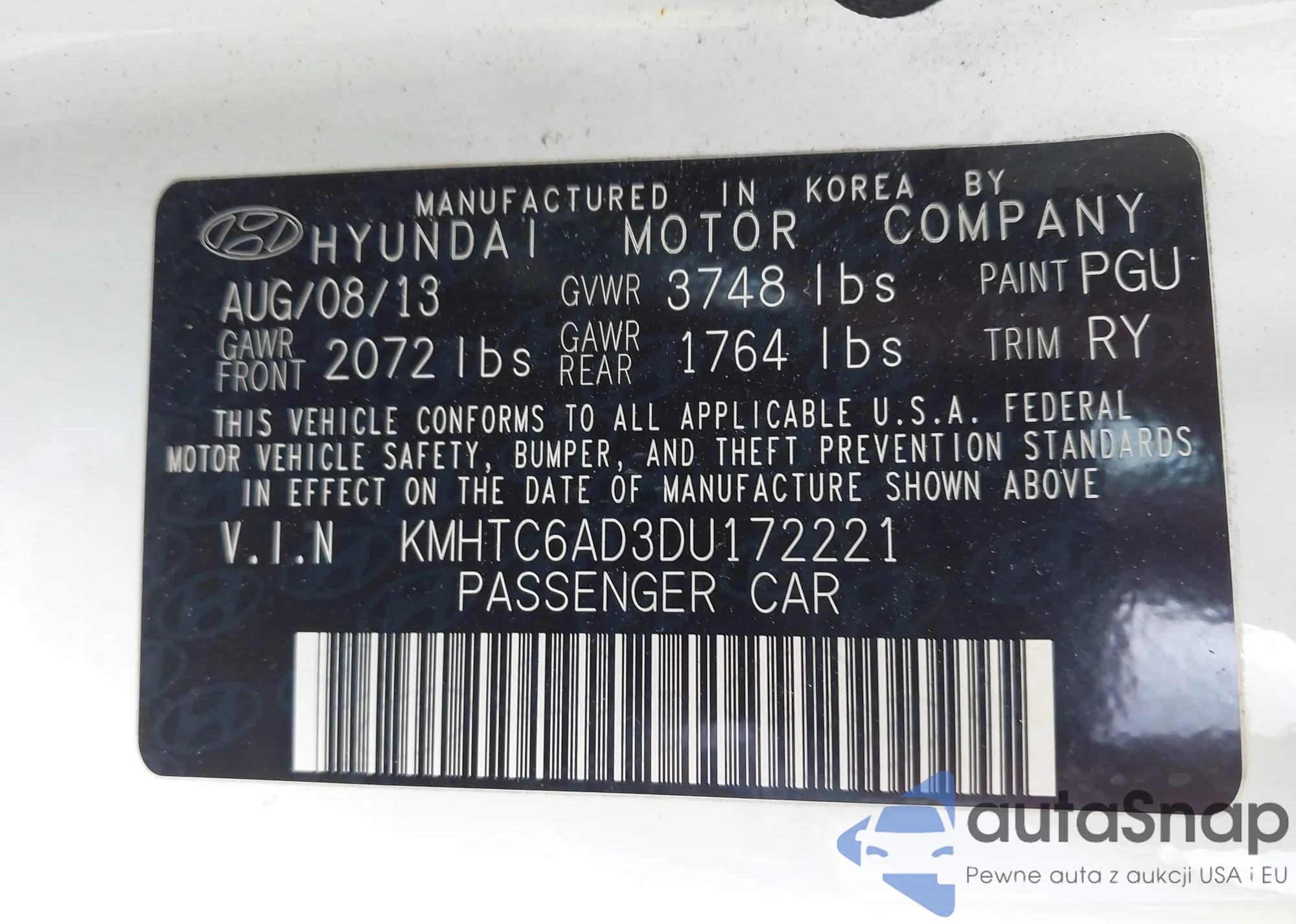 LOT: 43075858 VIN: KMHCT5AE4DU135293