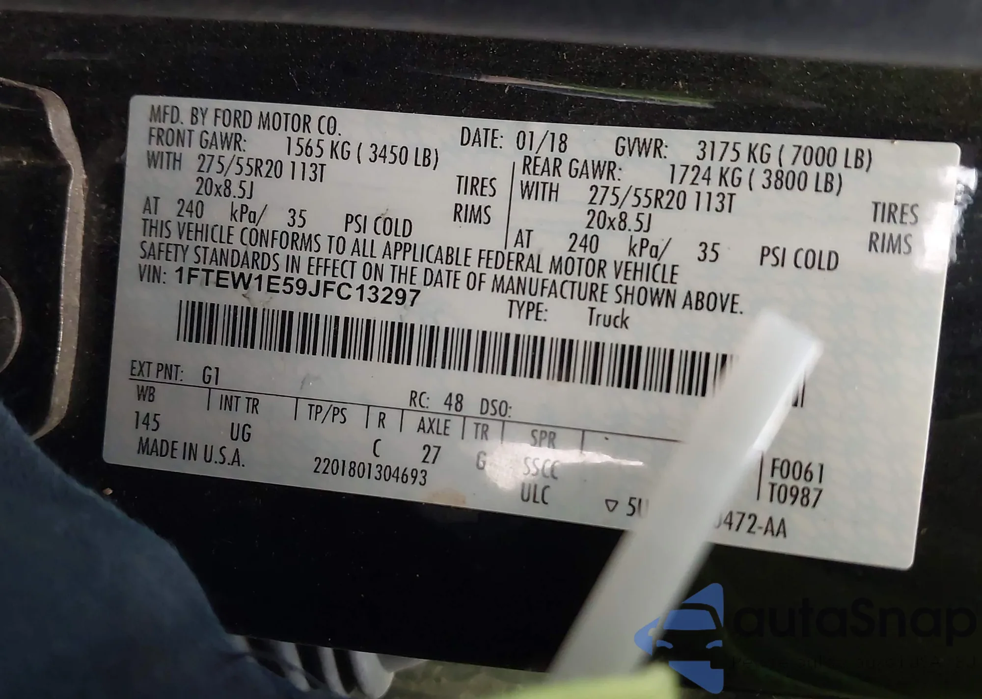 • VIN 1FTEW1E59JFC13297