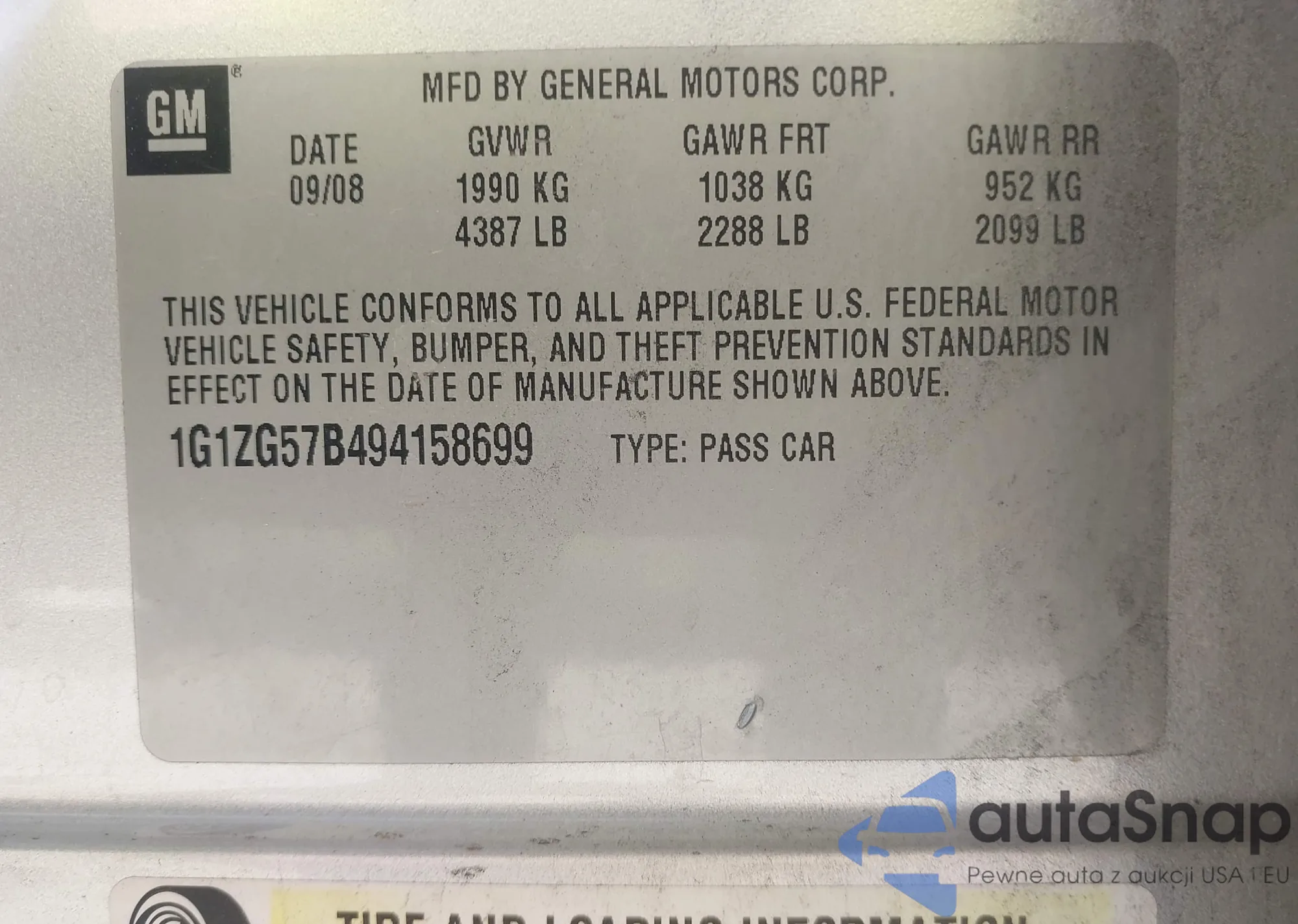LOT: 43087845 VIN: 1G1ZG57B494158699
