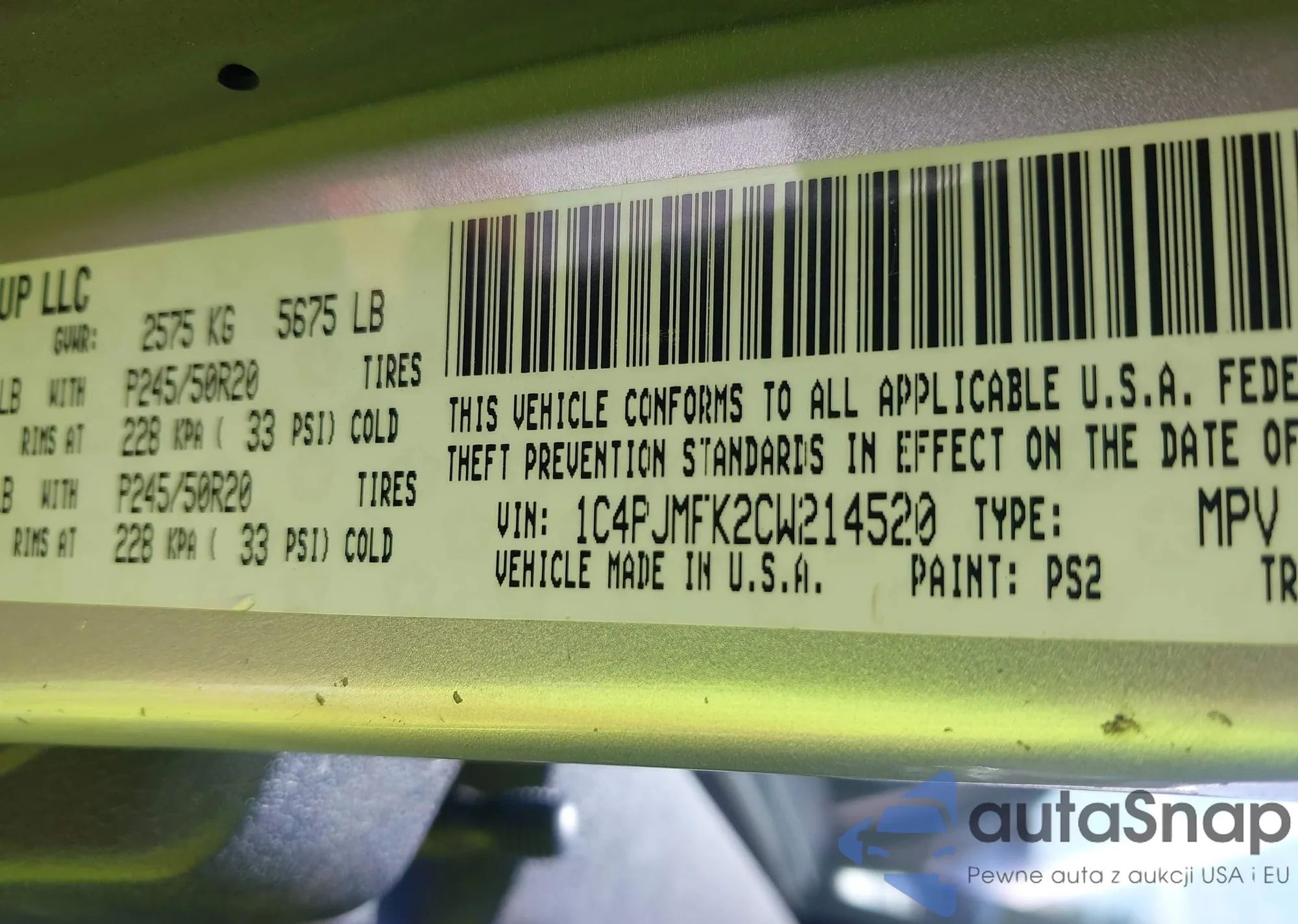• VIN 1C4PJMFK2CW214520