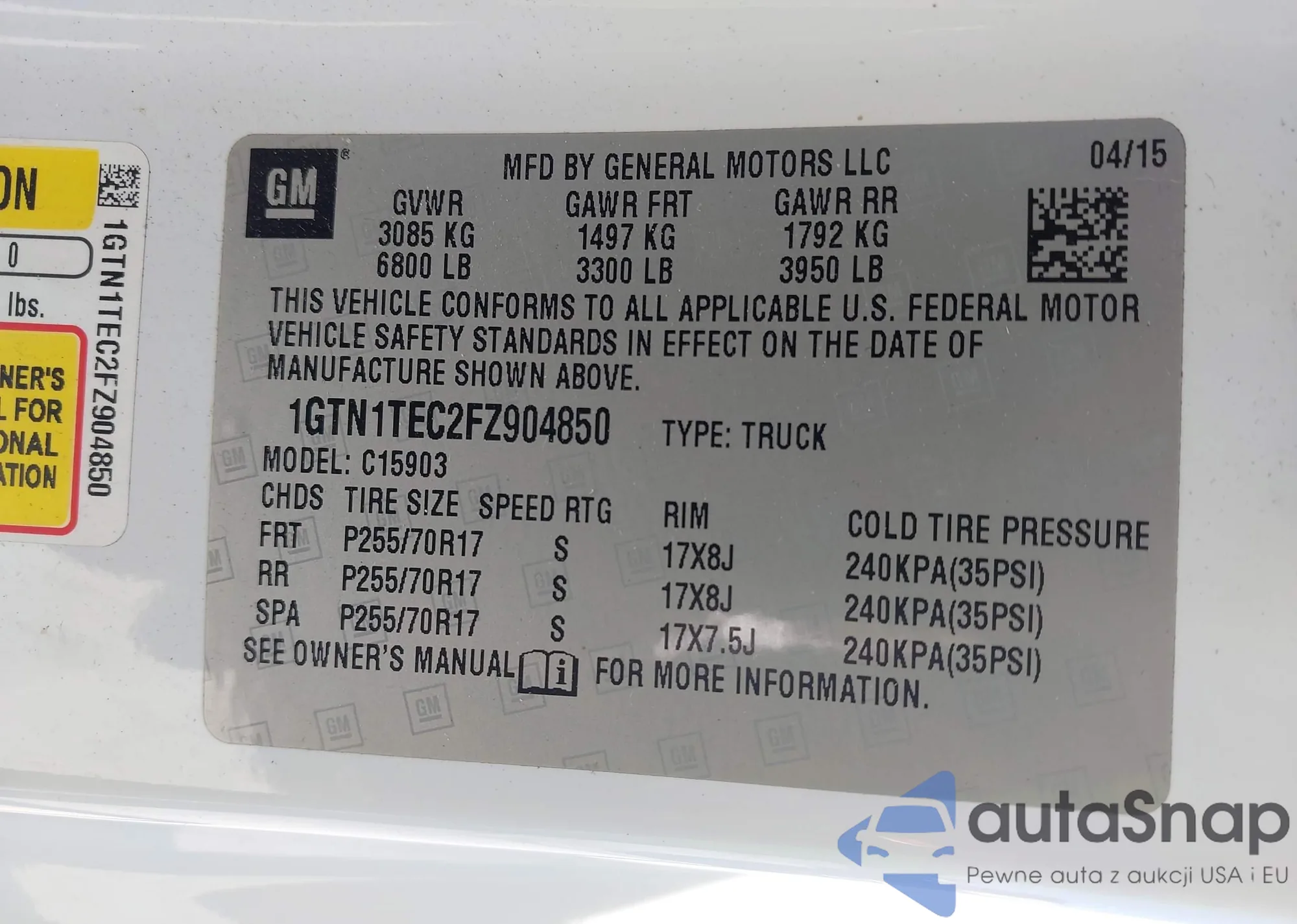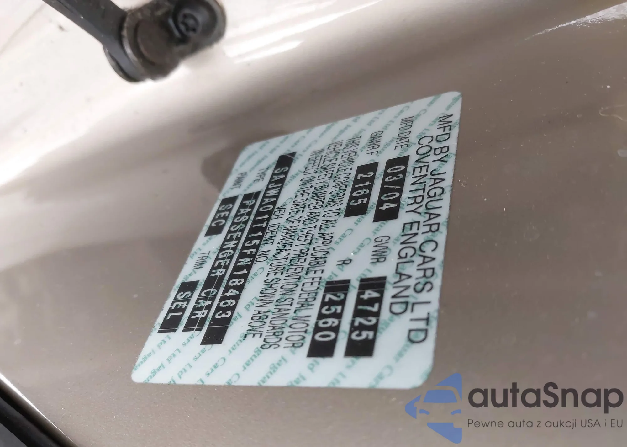 • VIN SAJWA01T15FN18463