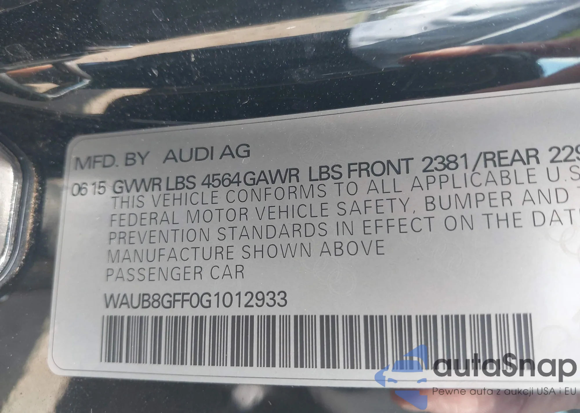 • VIN WAUB8GFF0G1012933