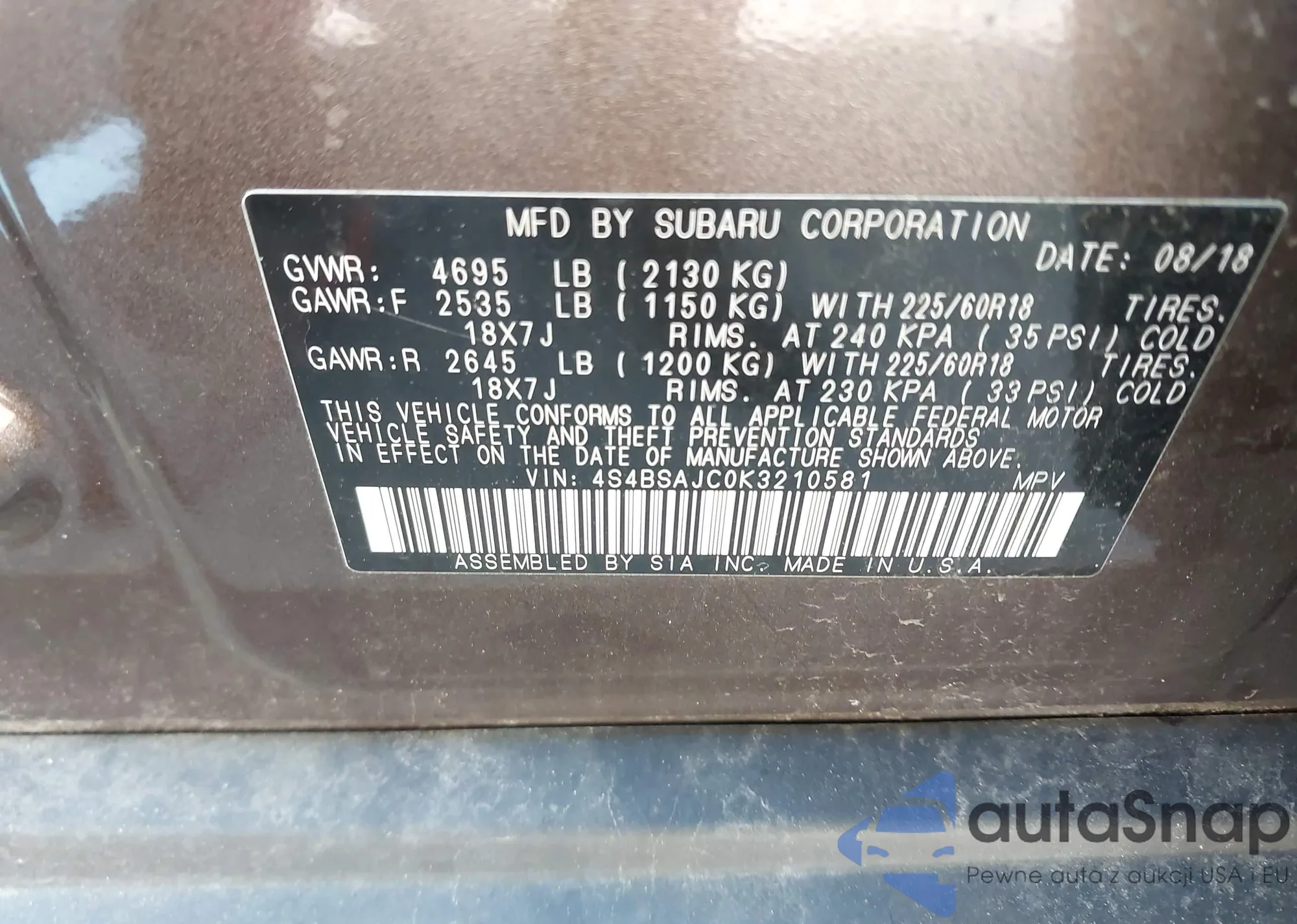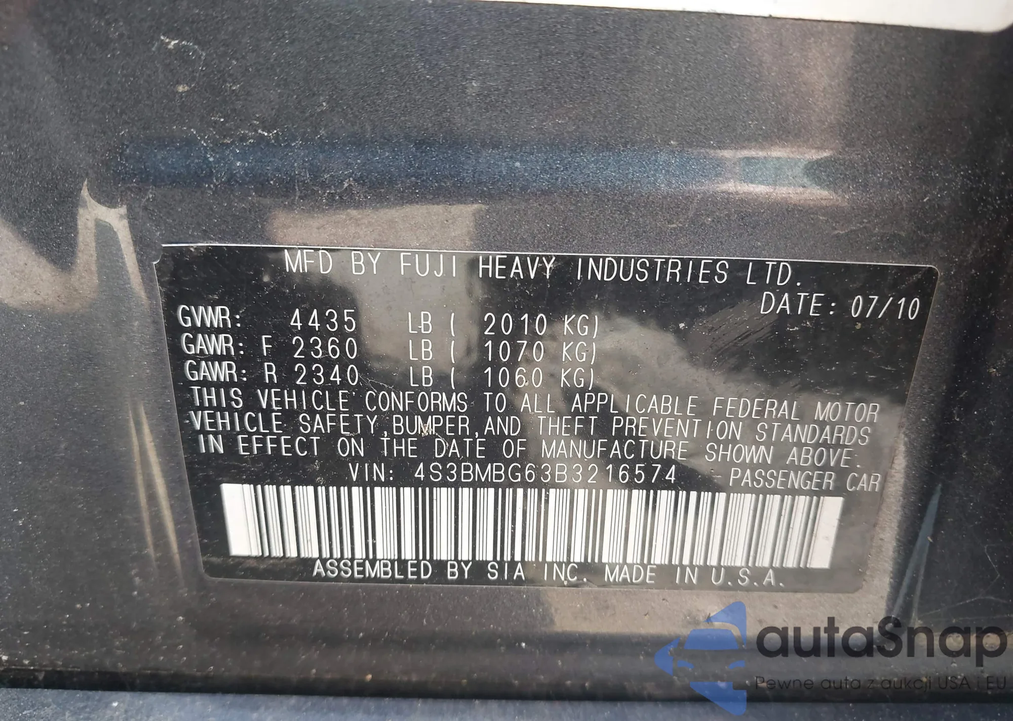 • VIN 4S3BMBG63B3216574