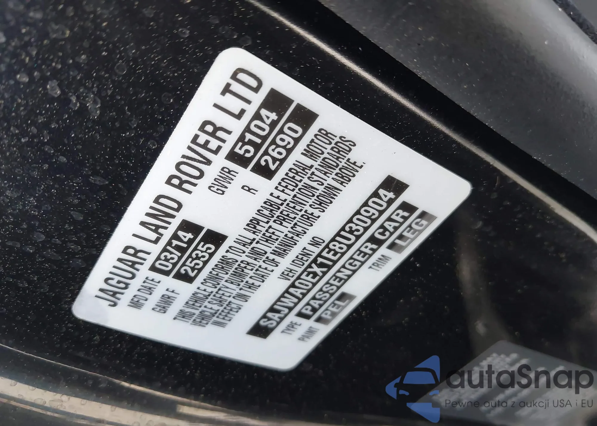 • VIN SAJWA0EX1E8U30904