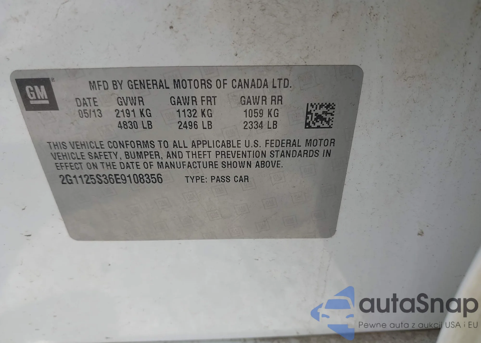 • VIN 2G1125S36E9108356