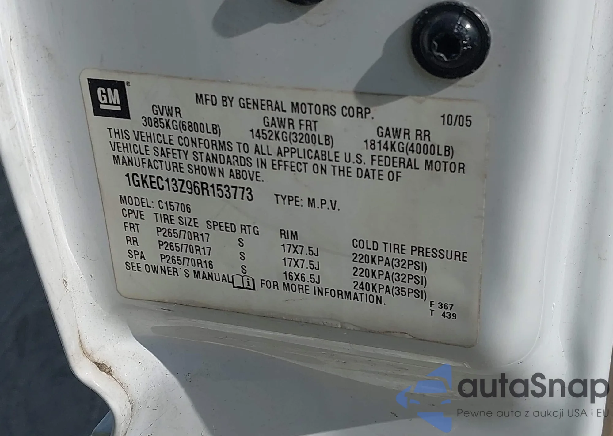 • VIN 1GKEC13Z96R153773