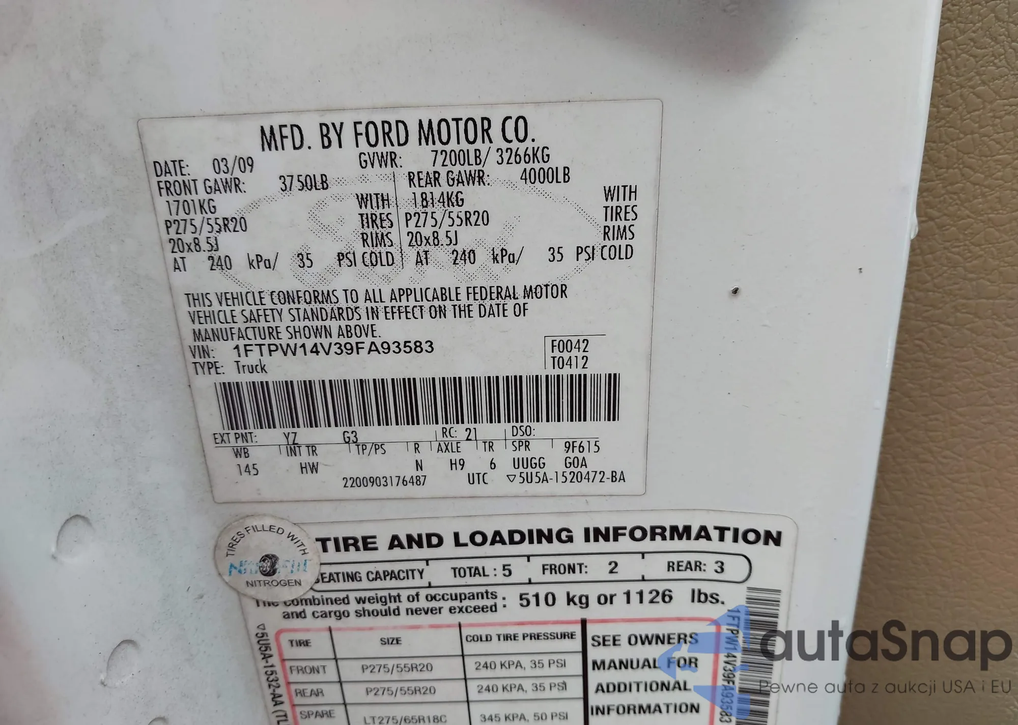 LOT: 43139904 VIN: 1FMCU03G29KA21696