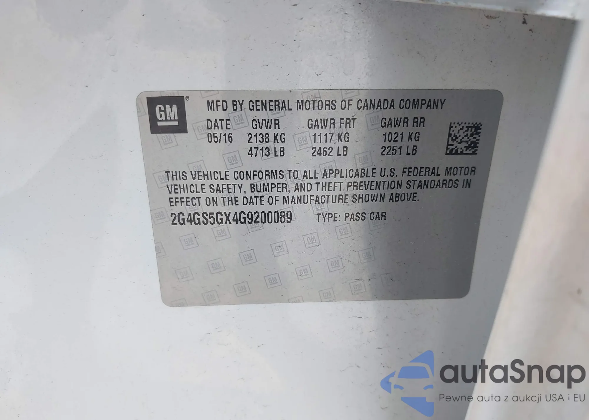 LOT: 42381666 VIN: 2G4GS5GX4G9200089