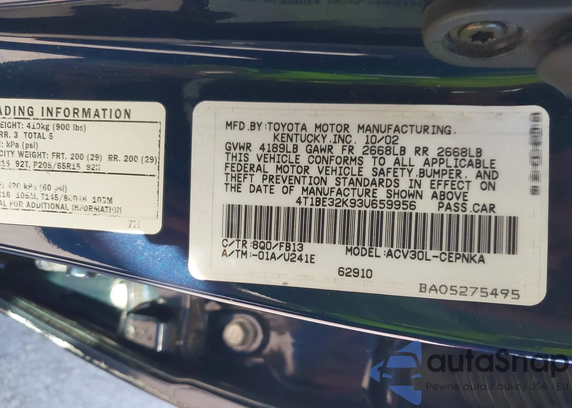 • VIN 4T1BE32K93U659956