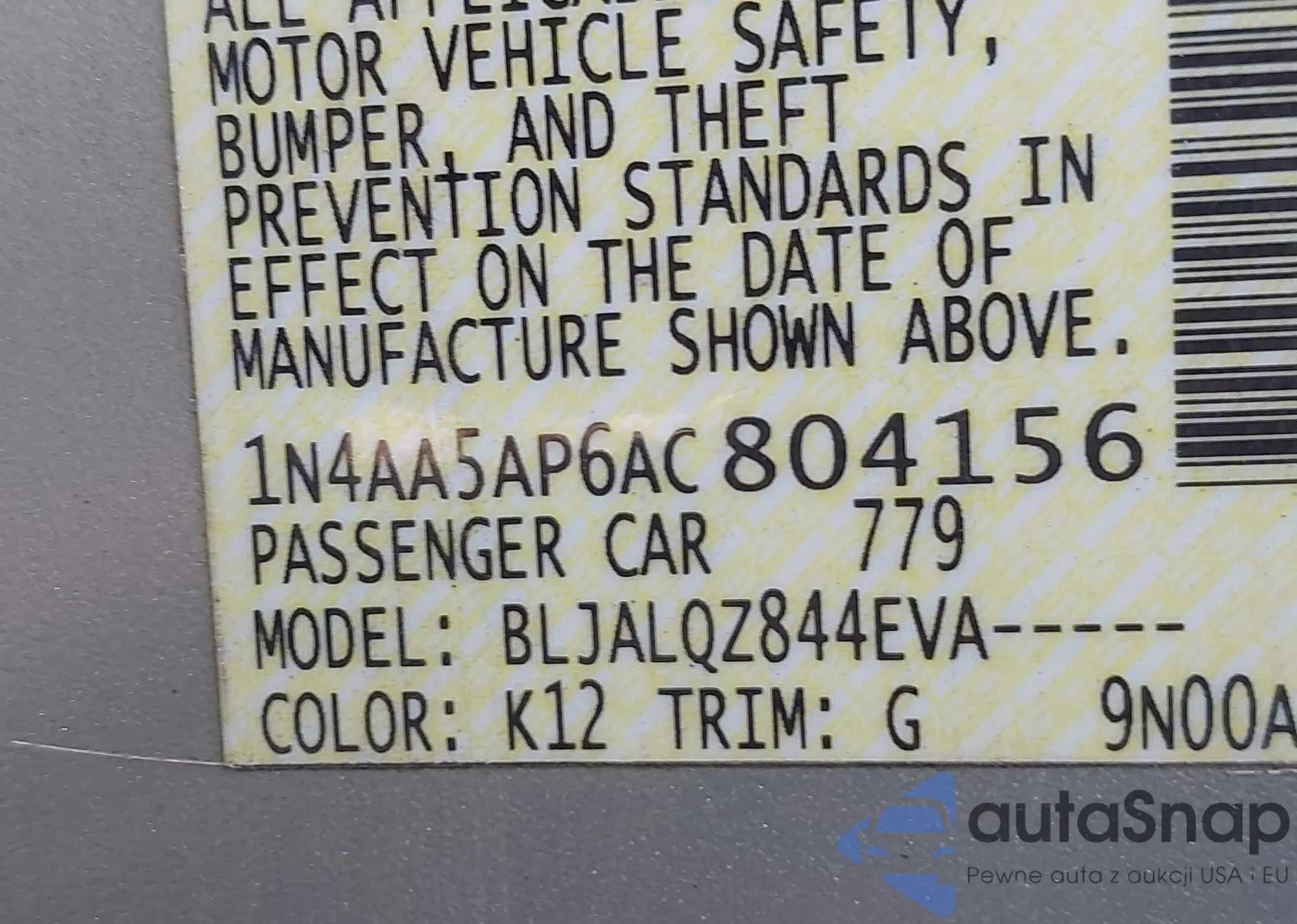LOT: 43185177 VIN: 1N4AL2AP4BC163129