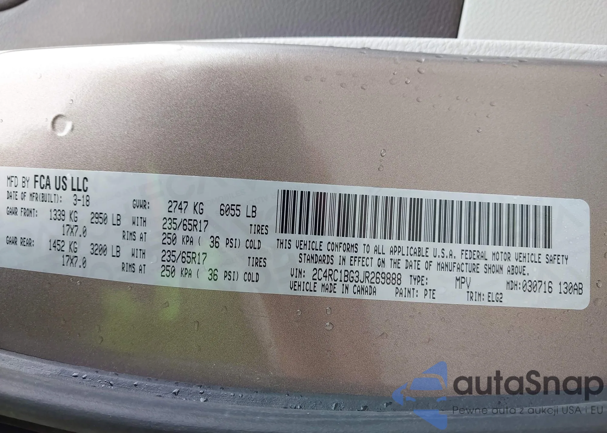 LOT: 42549991 VIN: 2C4RC1BG3JR269888