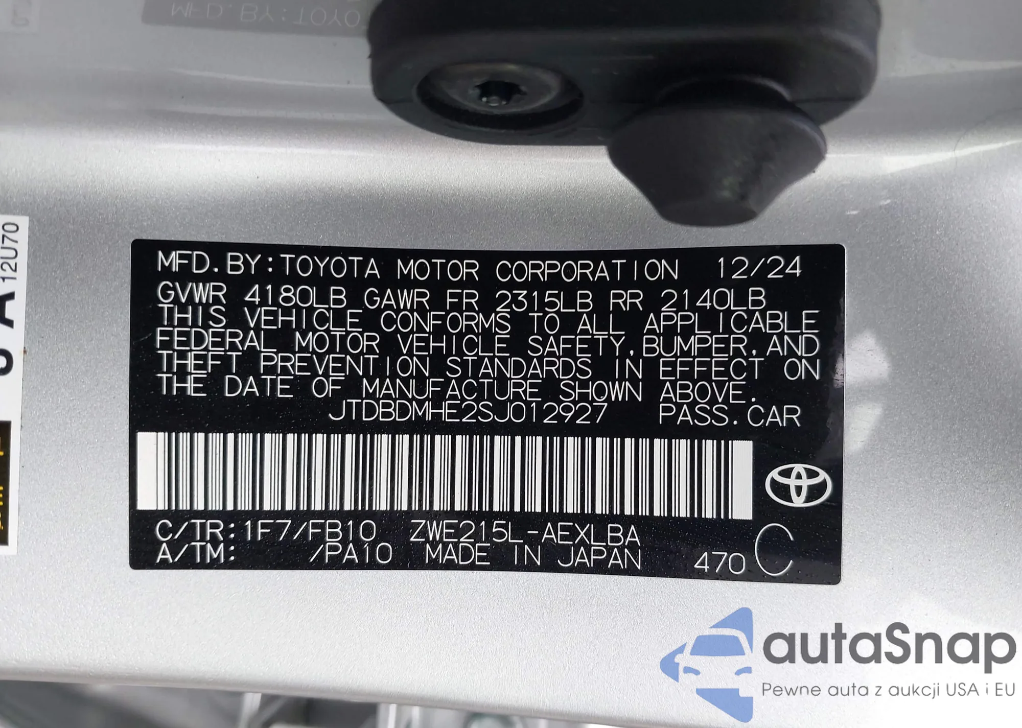 LOT: 42888731 VIN: JTDBDMHE2SJ012927