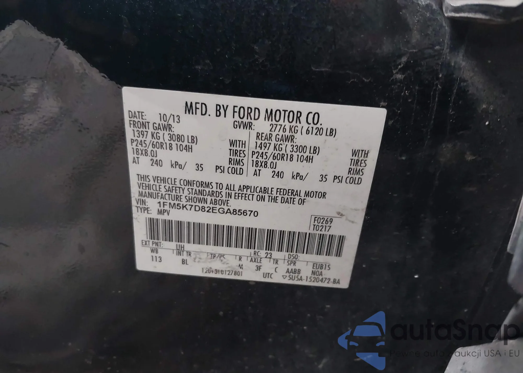 LOT: 42827662 VIN: 1G1YM2D78E5114342