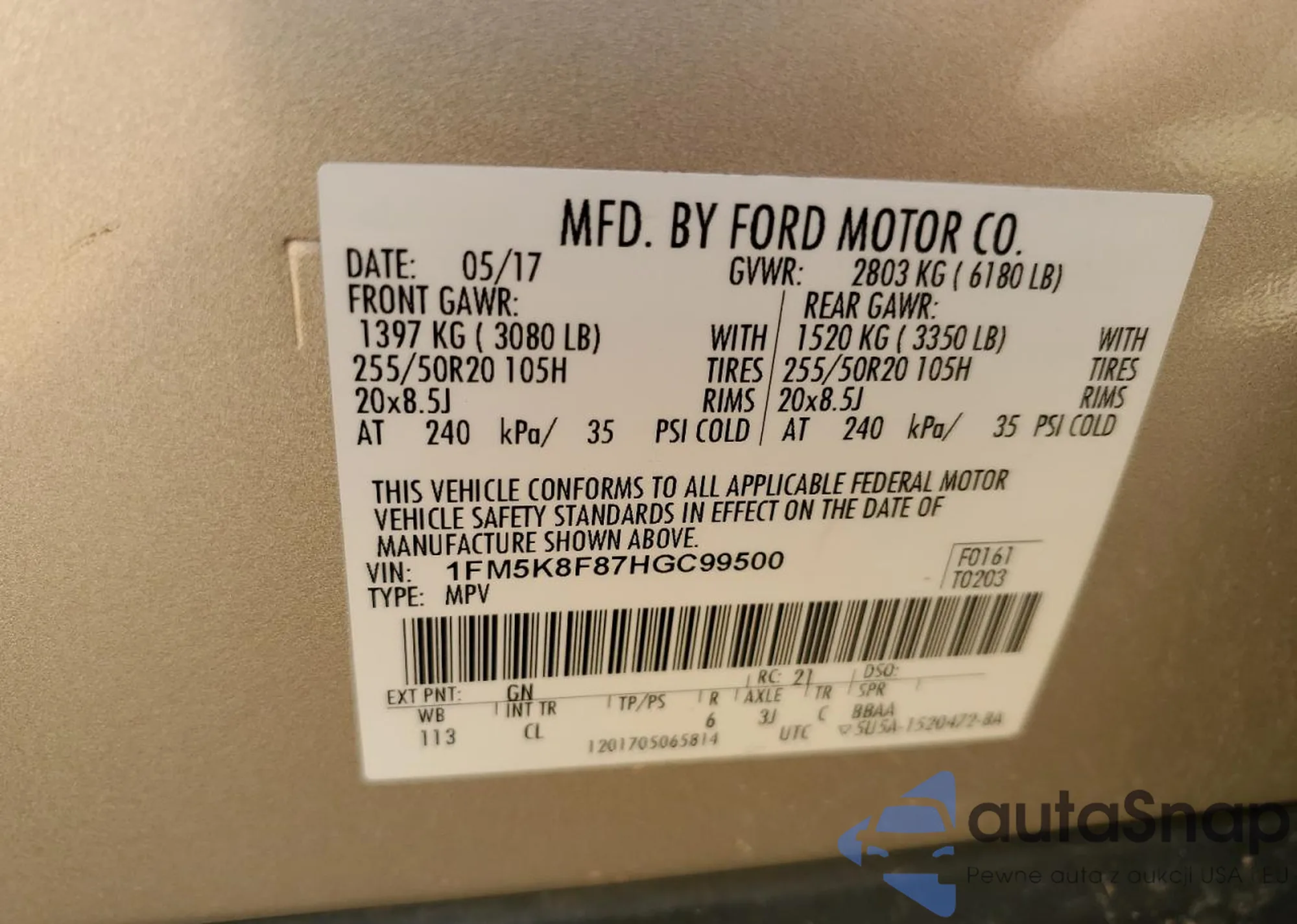 • VIN 1FM5K8F87HGC99500