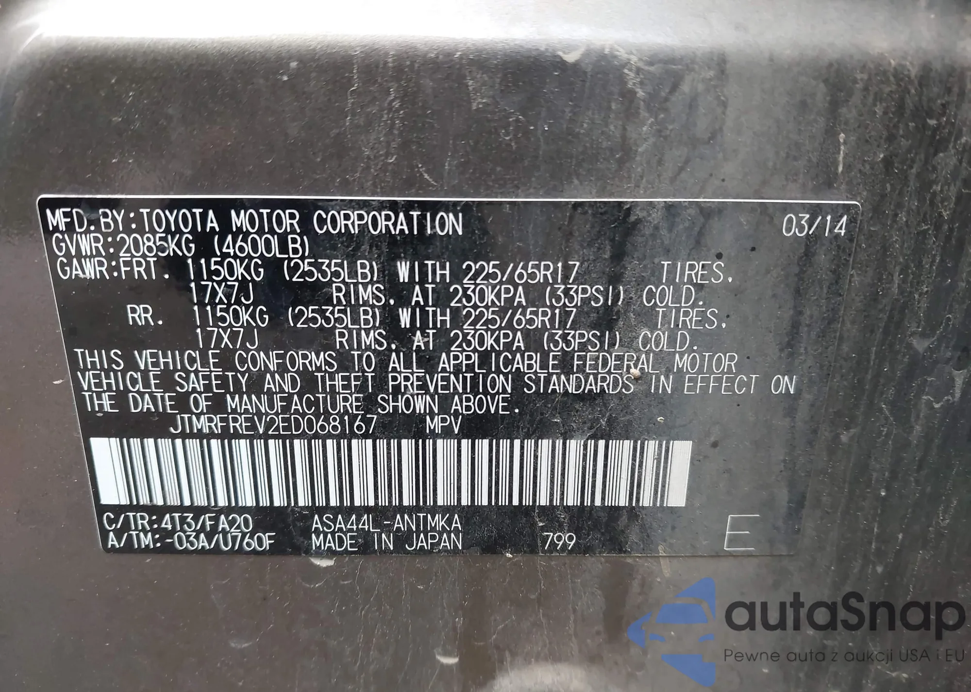 • VIN JTMRFREV2ED068167