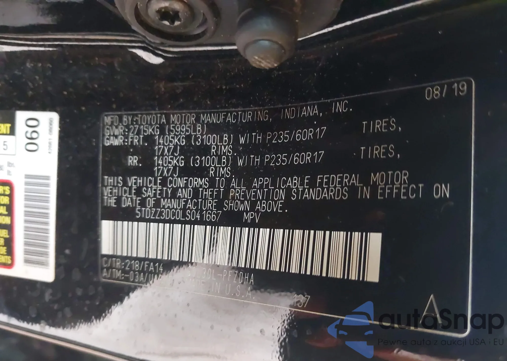 • VIN 5TDZZ3DC0LS041667