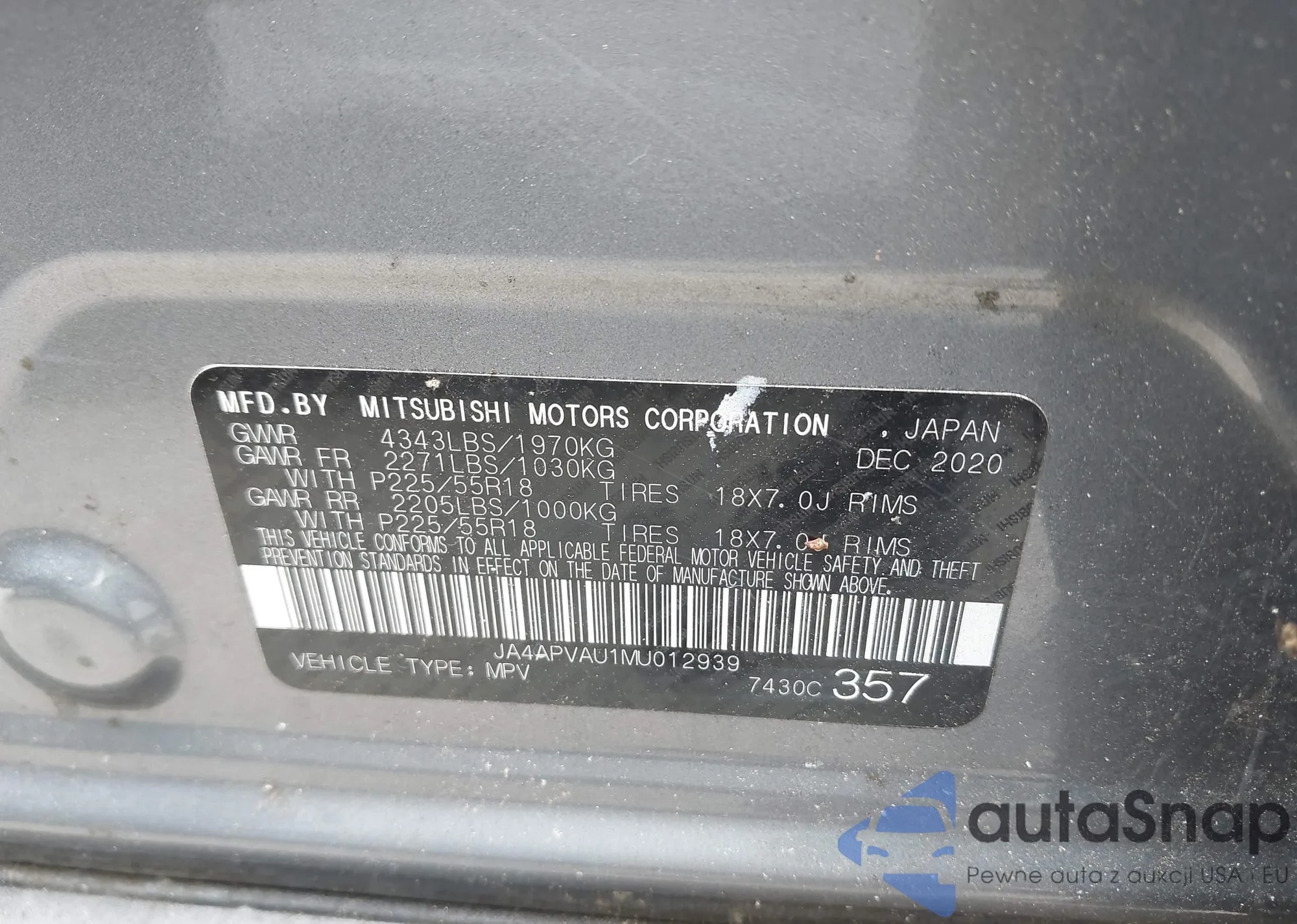 LOT: 43044649 VIN: JA4APVAU1MU012939