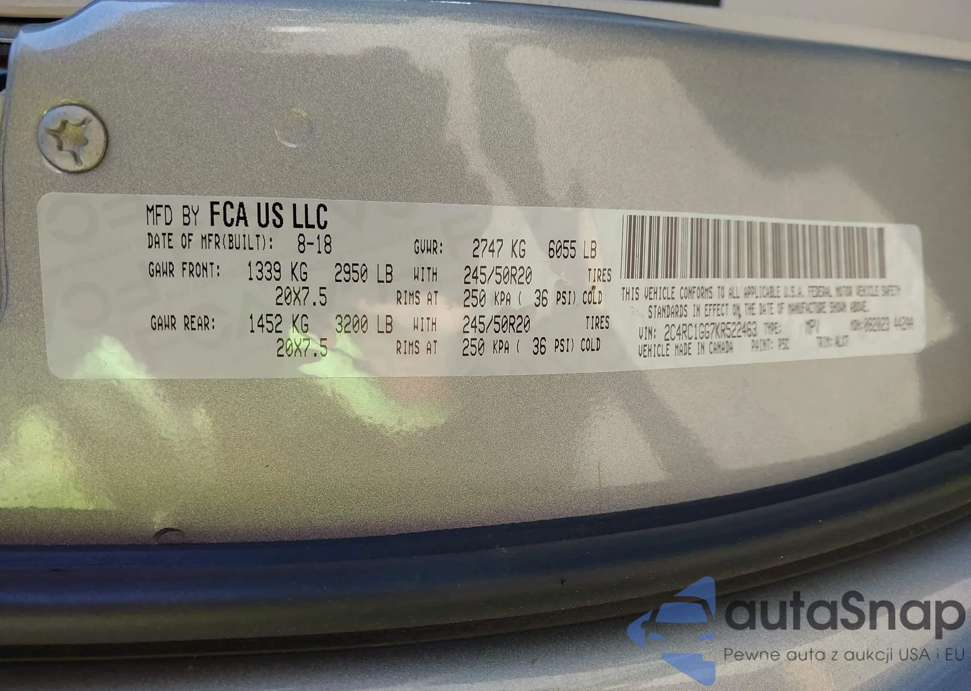 • VIN 2C4RC1GG7KR522463