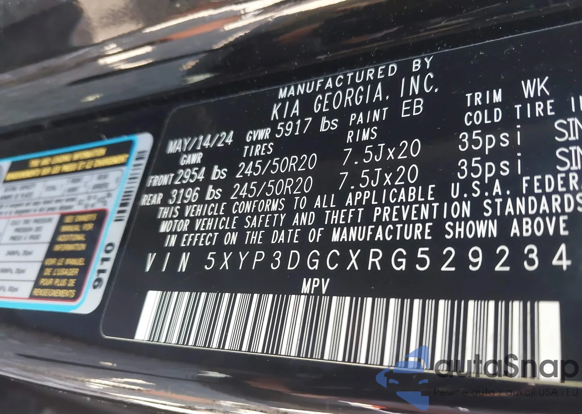 LOT: 43072860 VIN: 5XYP3DGCXRG529234