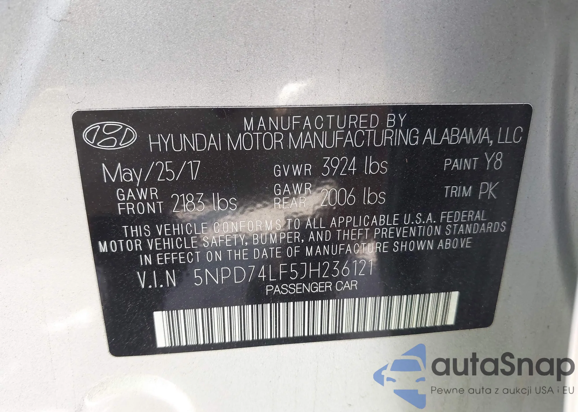 LOT: 43088463 VIN: 5NPD74LF5JH236121