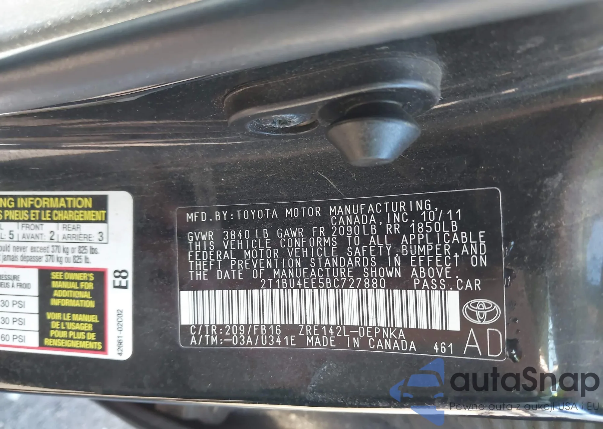 • VIN 2T1BU4EE5BC727880