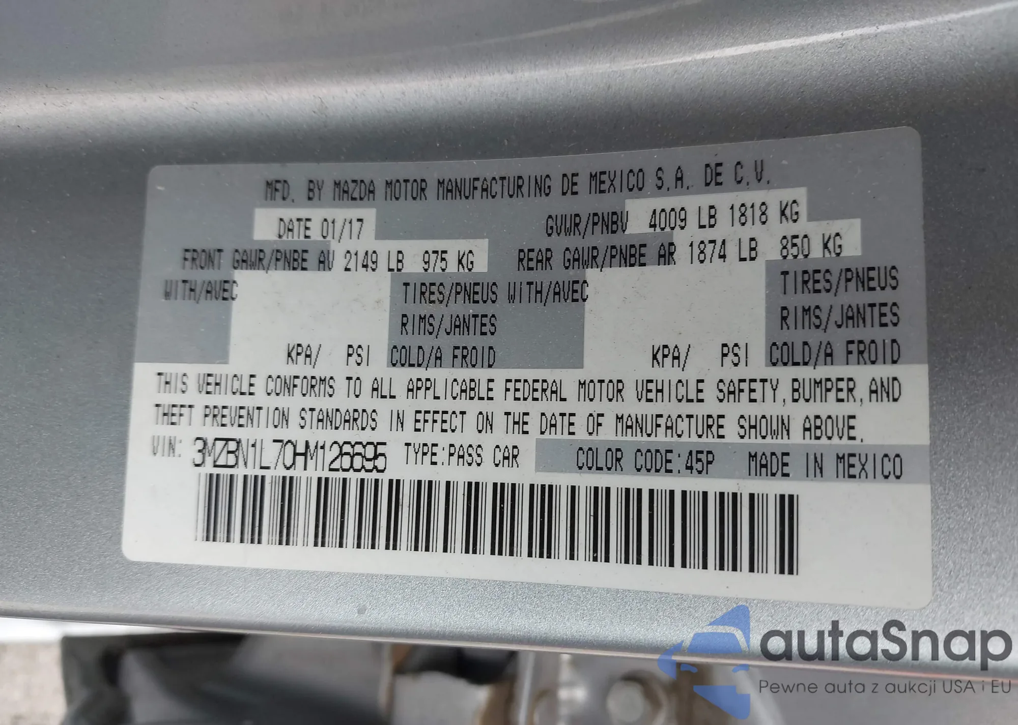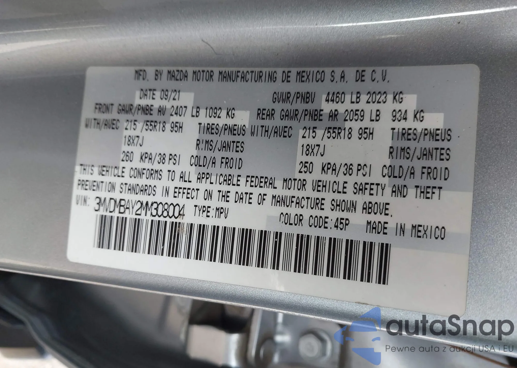 • VIN 3MVDMBAY2MM308004