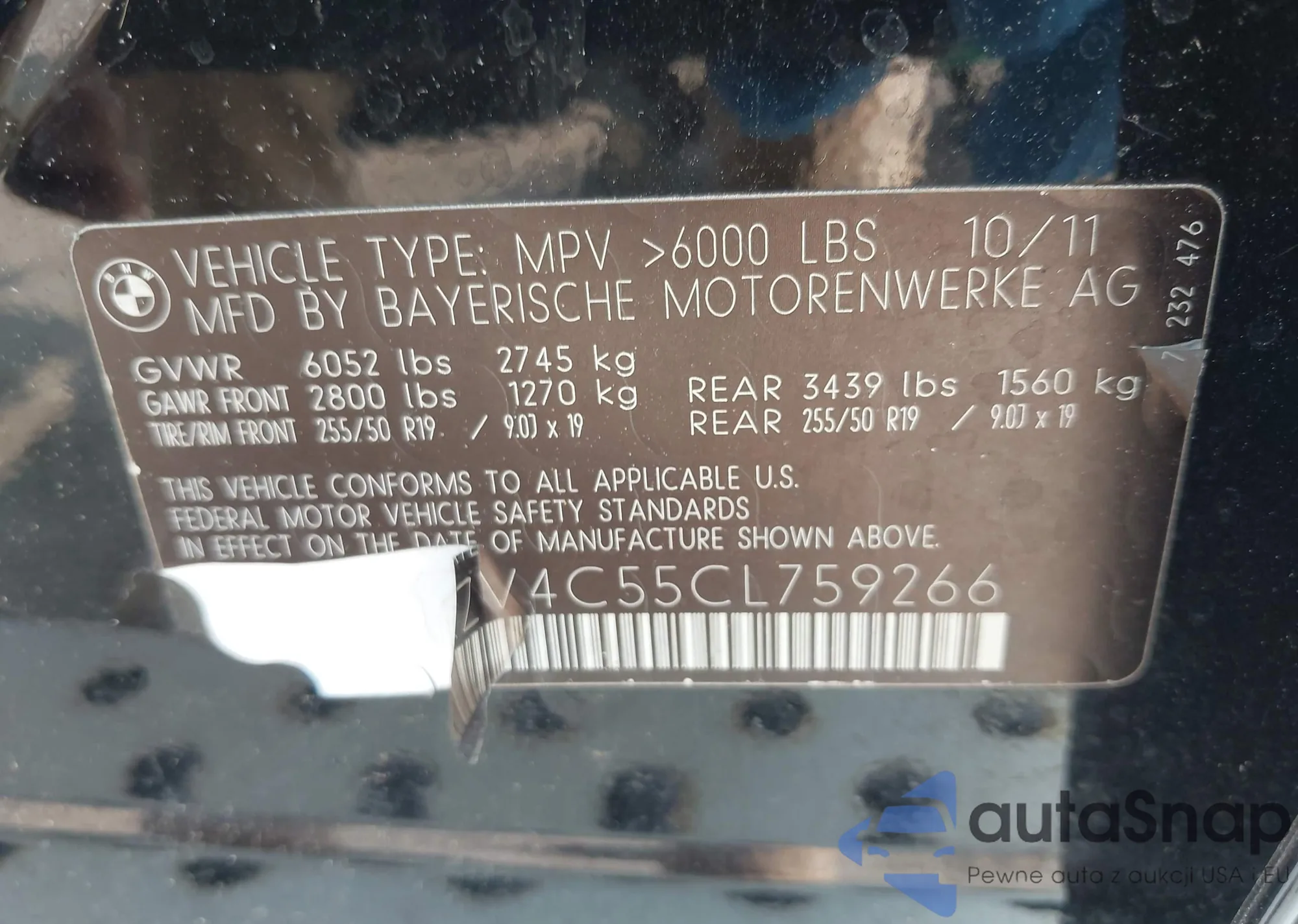• VIN 5UXZV4C55CL759266