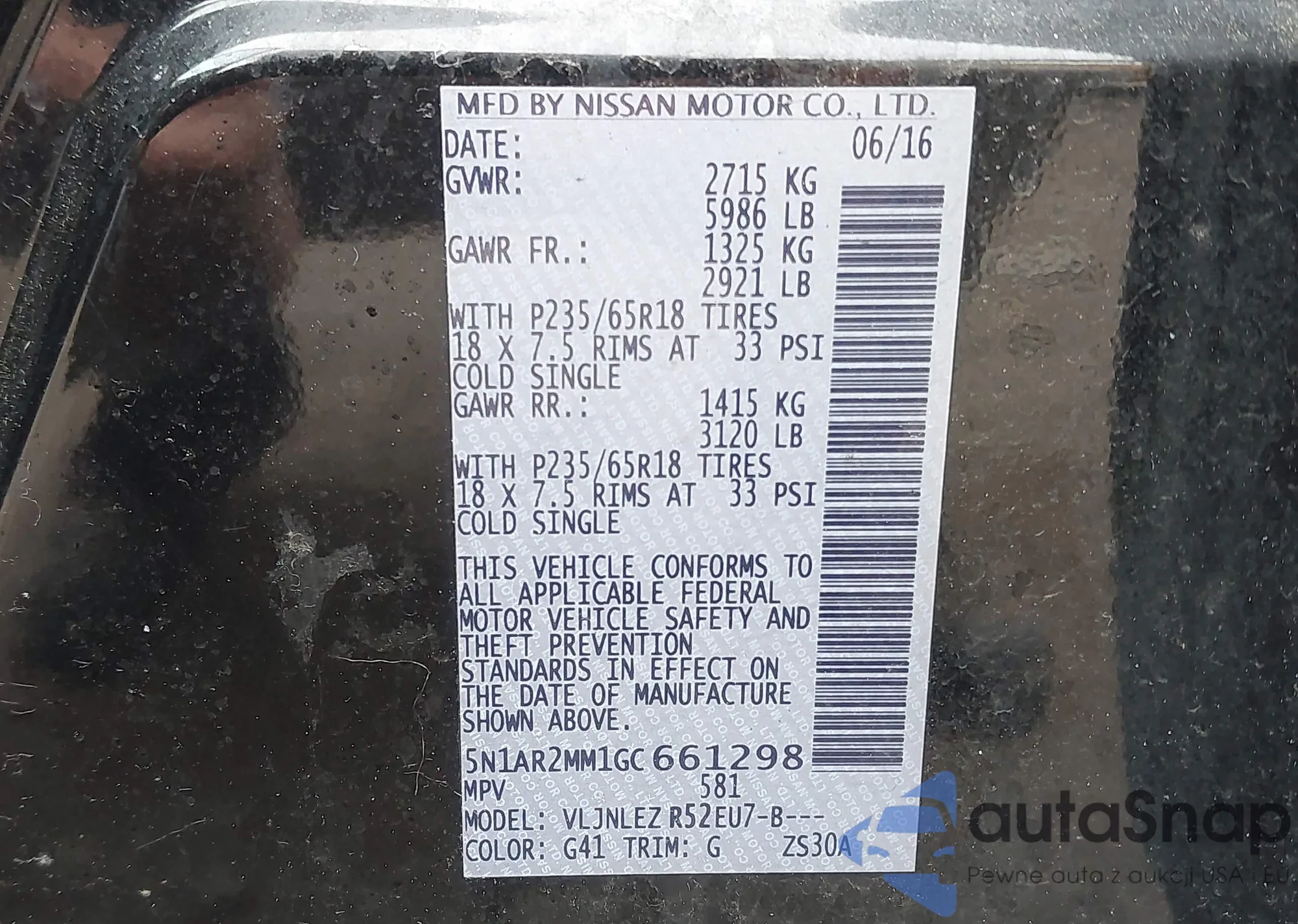 LOT: 42606461 VIN: KM8SR4HF6EU081581
