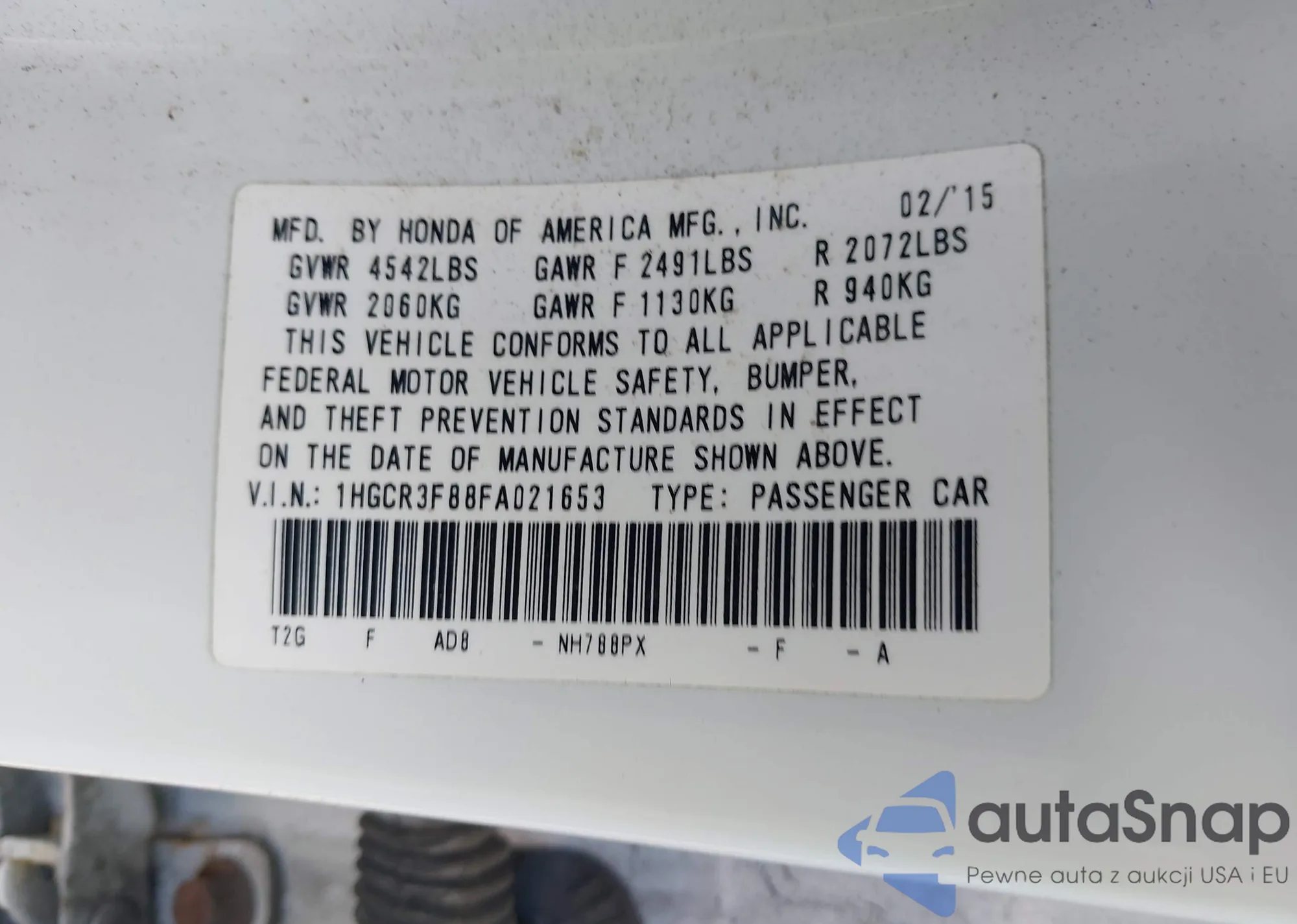 LOT: 43089538 VIN: 1HGCR3F88FA021653