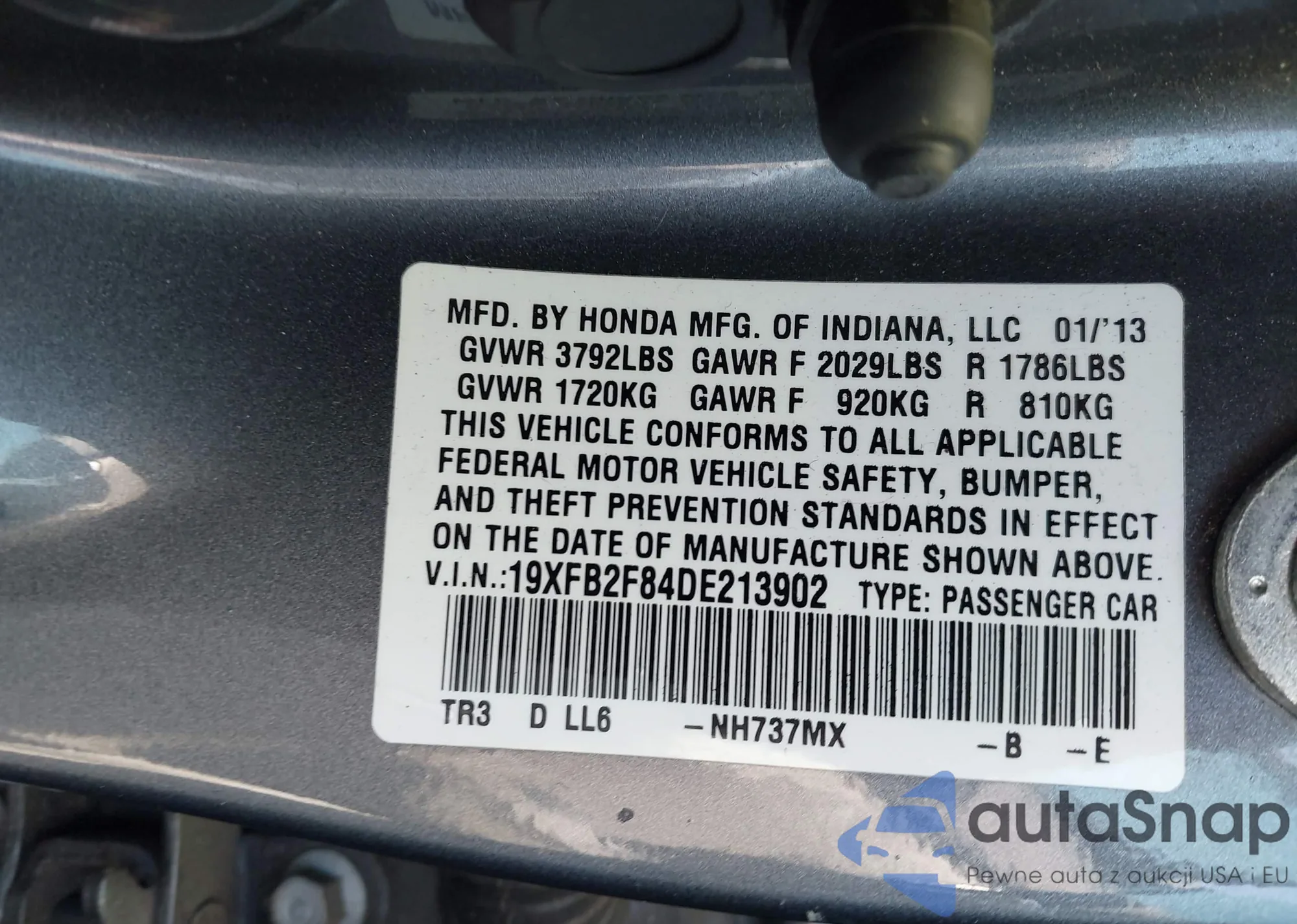 LOT: 42640744 VIN: 19XFB2F84DE213902
