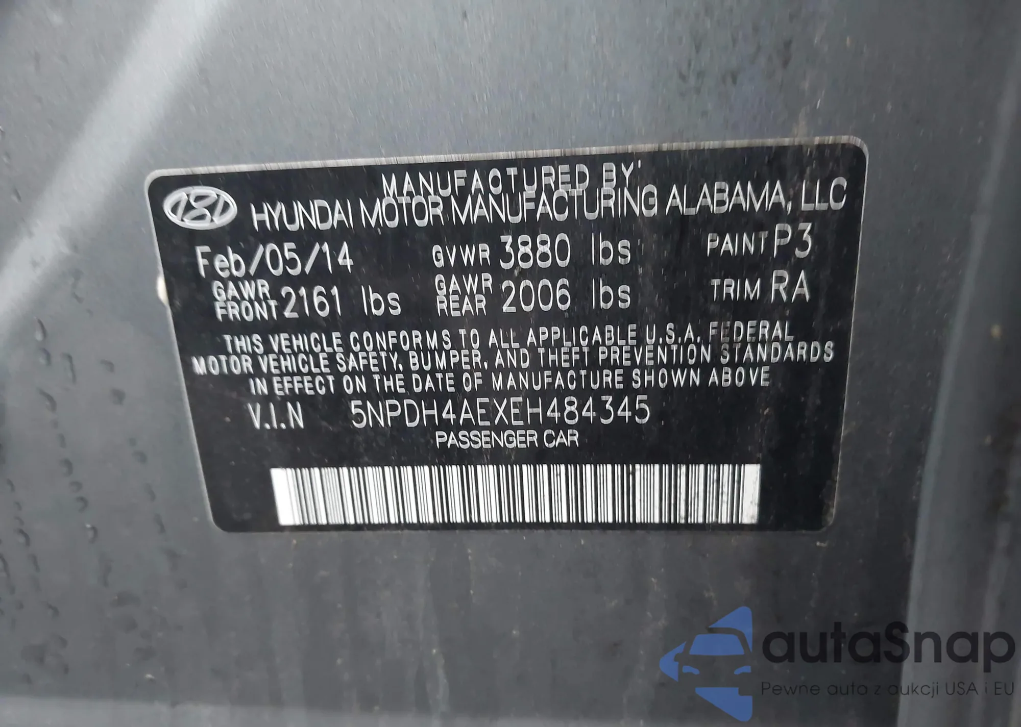 • VIN 5NPDH4AEXEH484345
