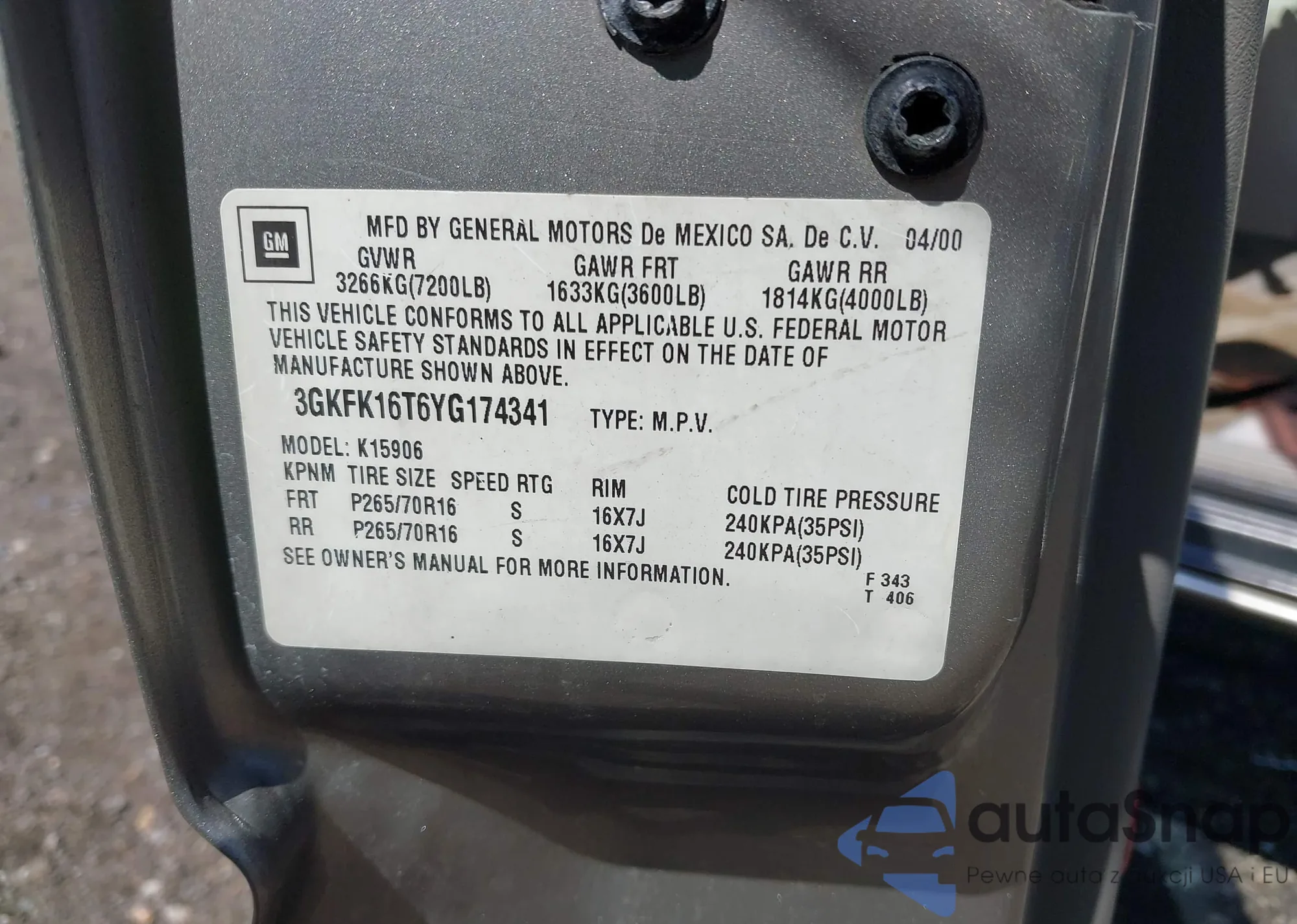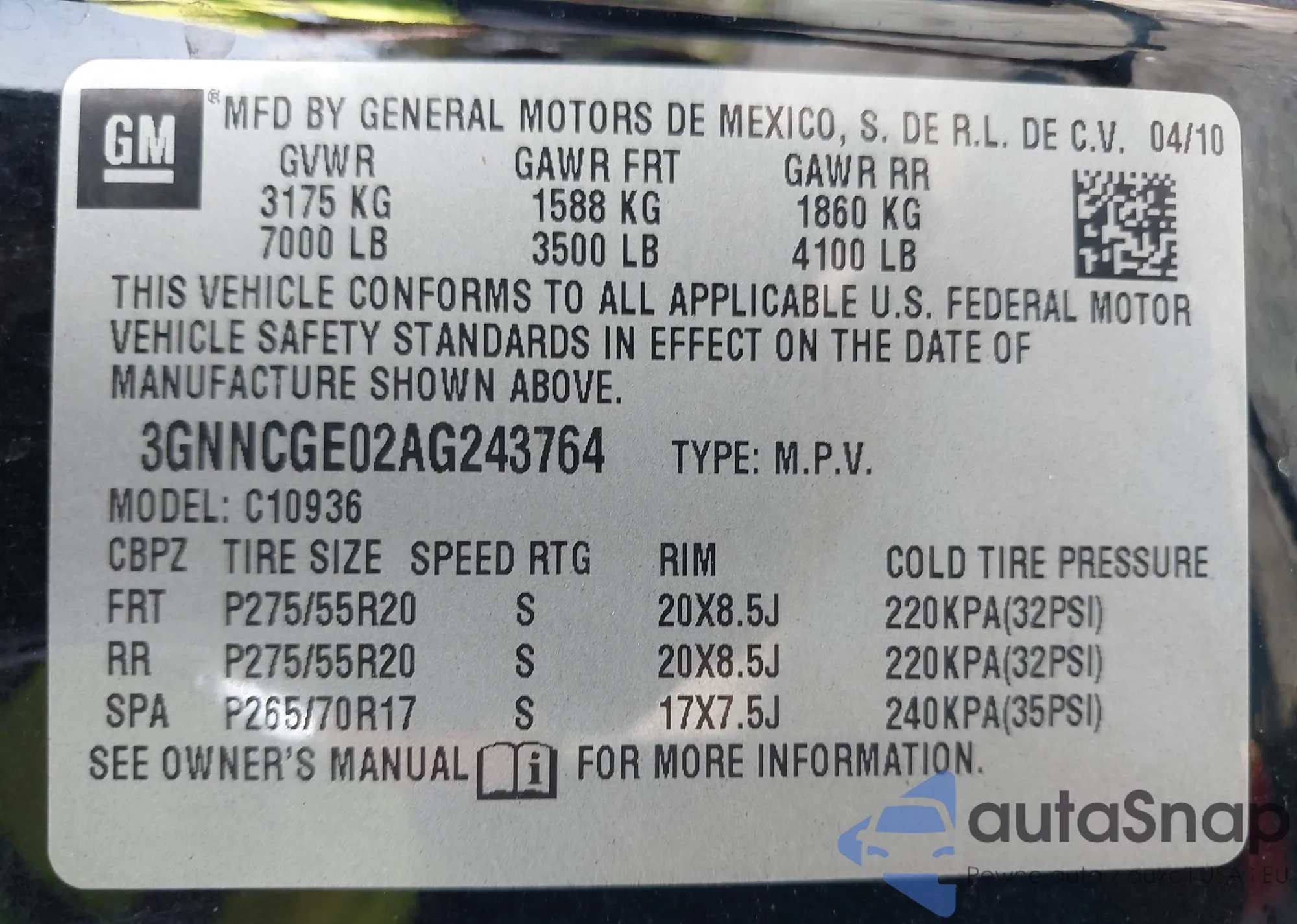 • VIN 3GNNCGE02AG243764