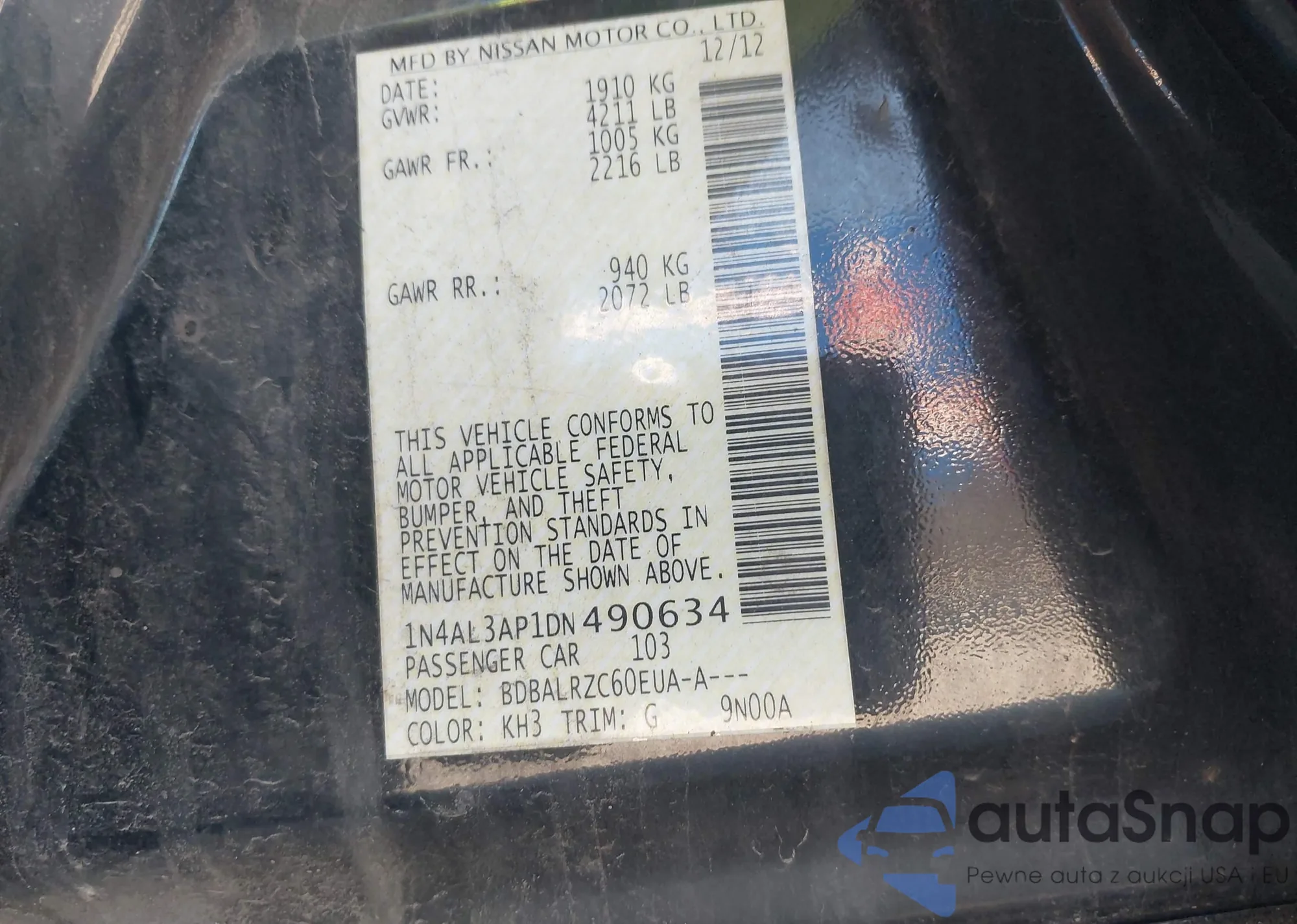 • VIN 1N4AL3AP1DN490634