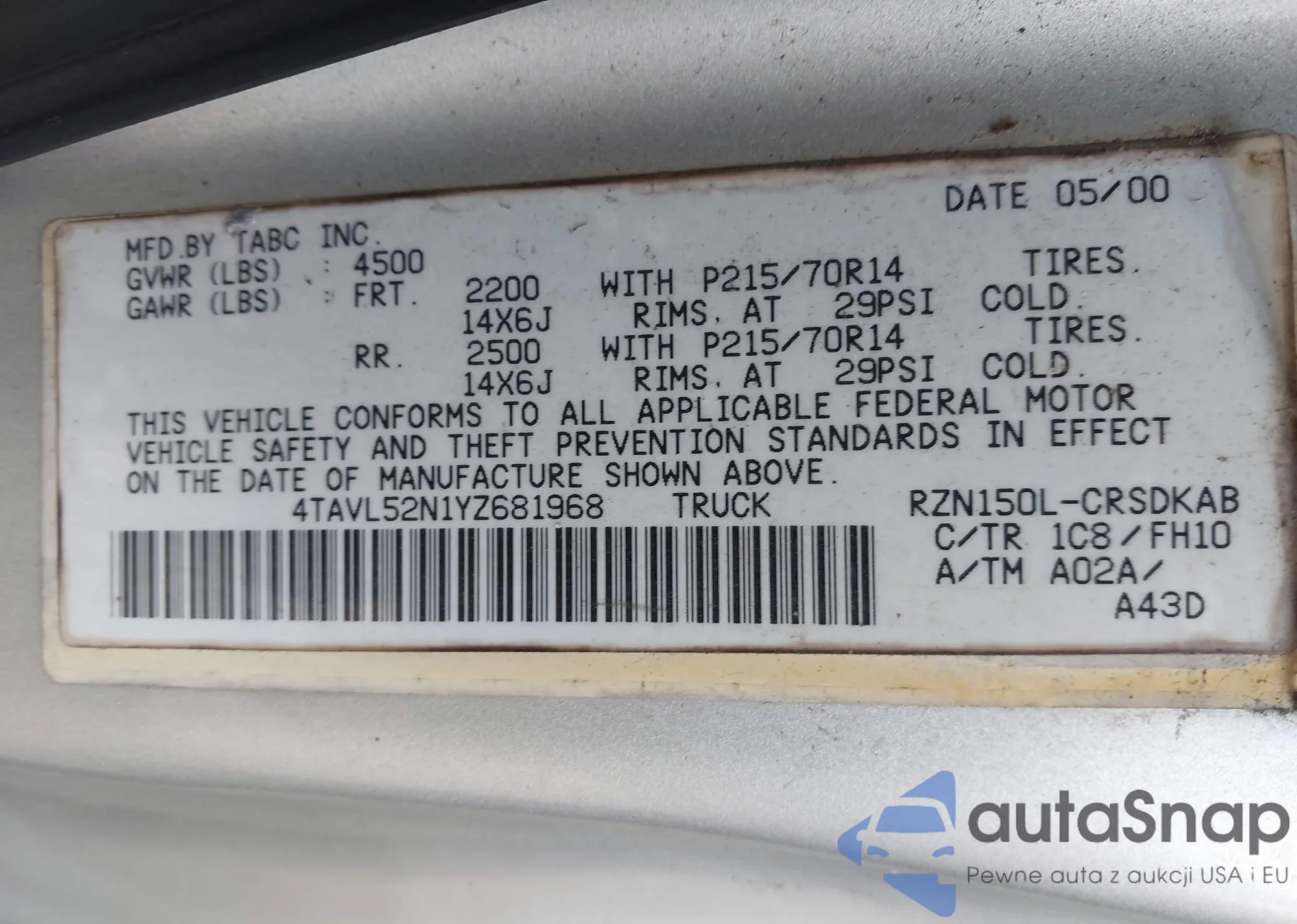 LOT: 43001818 VIN: JTDBU4EE5B9135093
