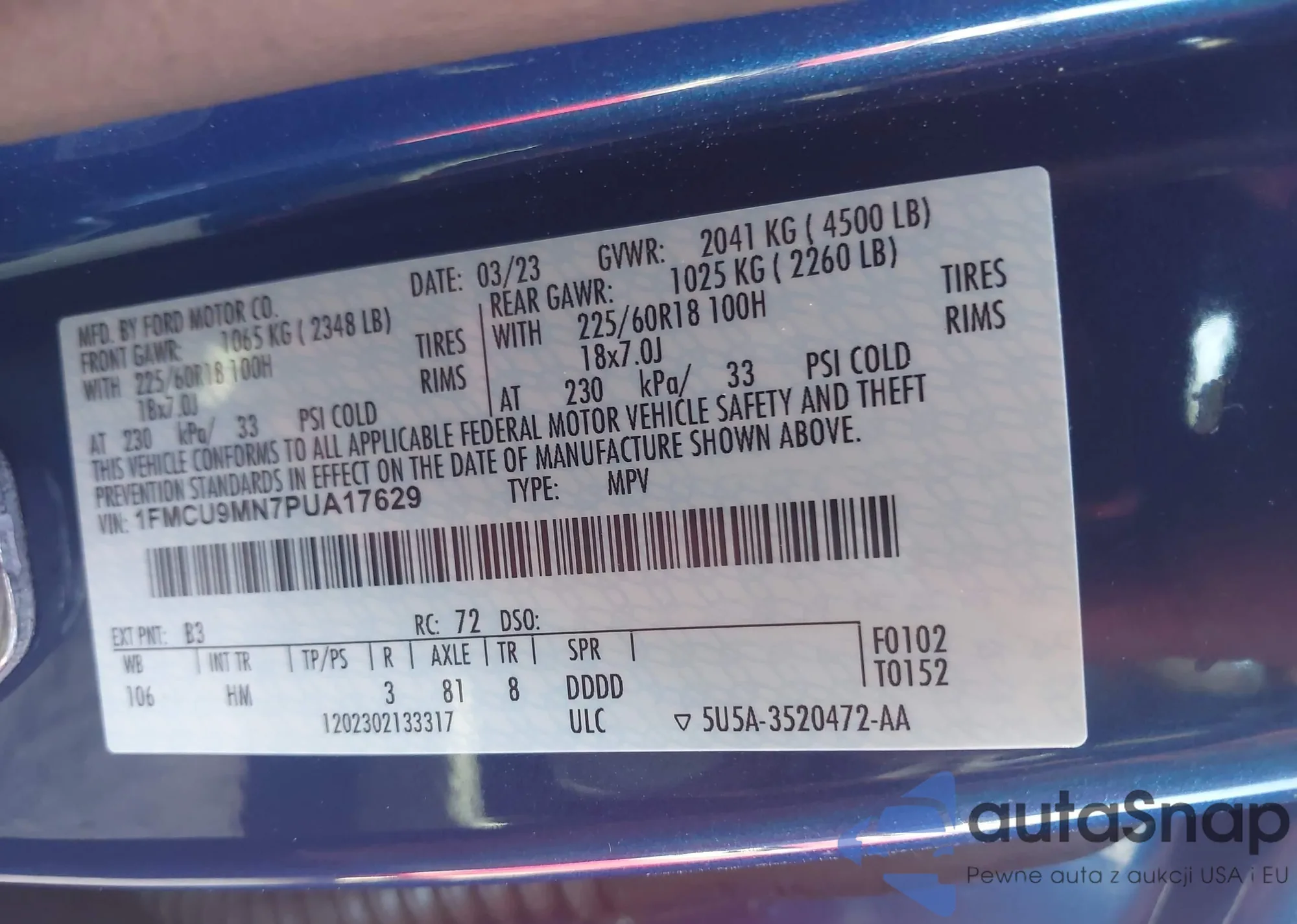 • VIN 1FMCU9MN7PUA17629