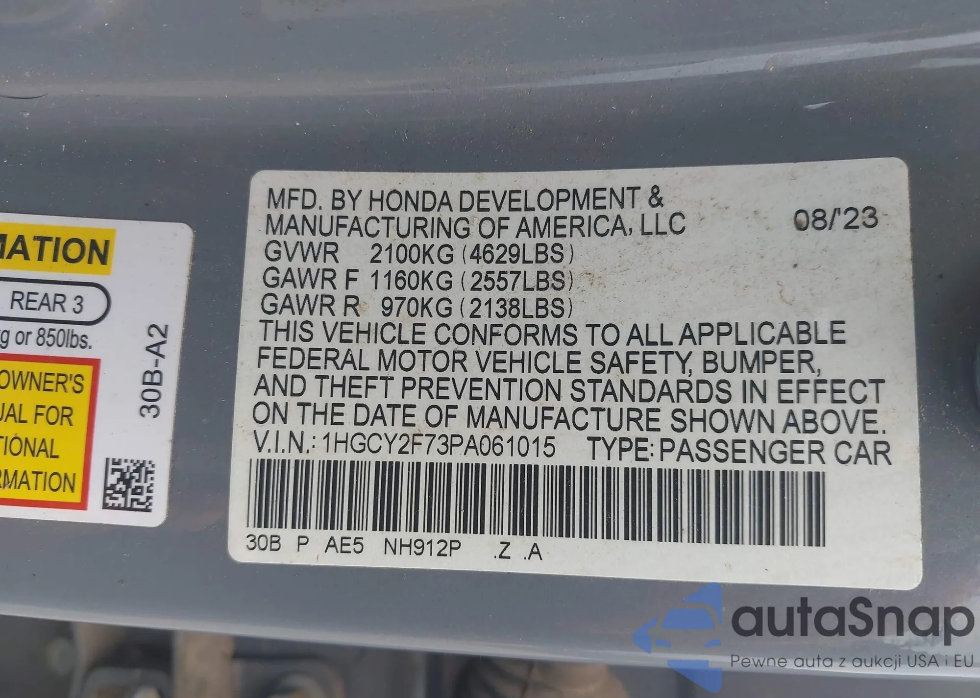 LOT: 43188265 VIN: 1HGCM66897A032680