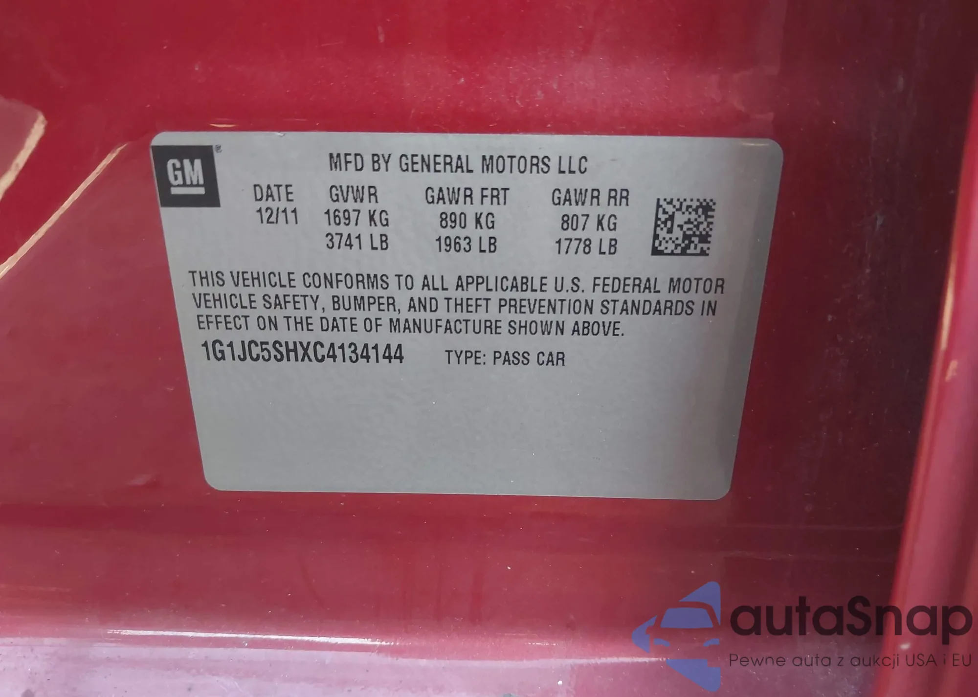 • VIN 1G1JC5SHXC4134144