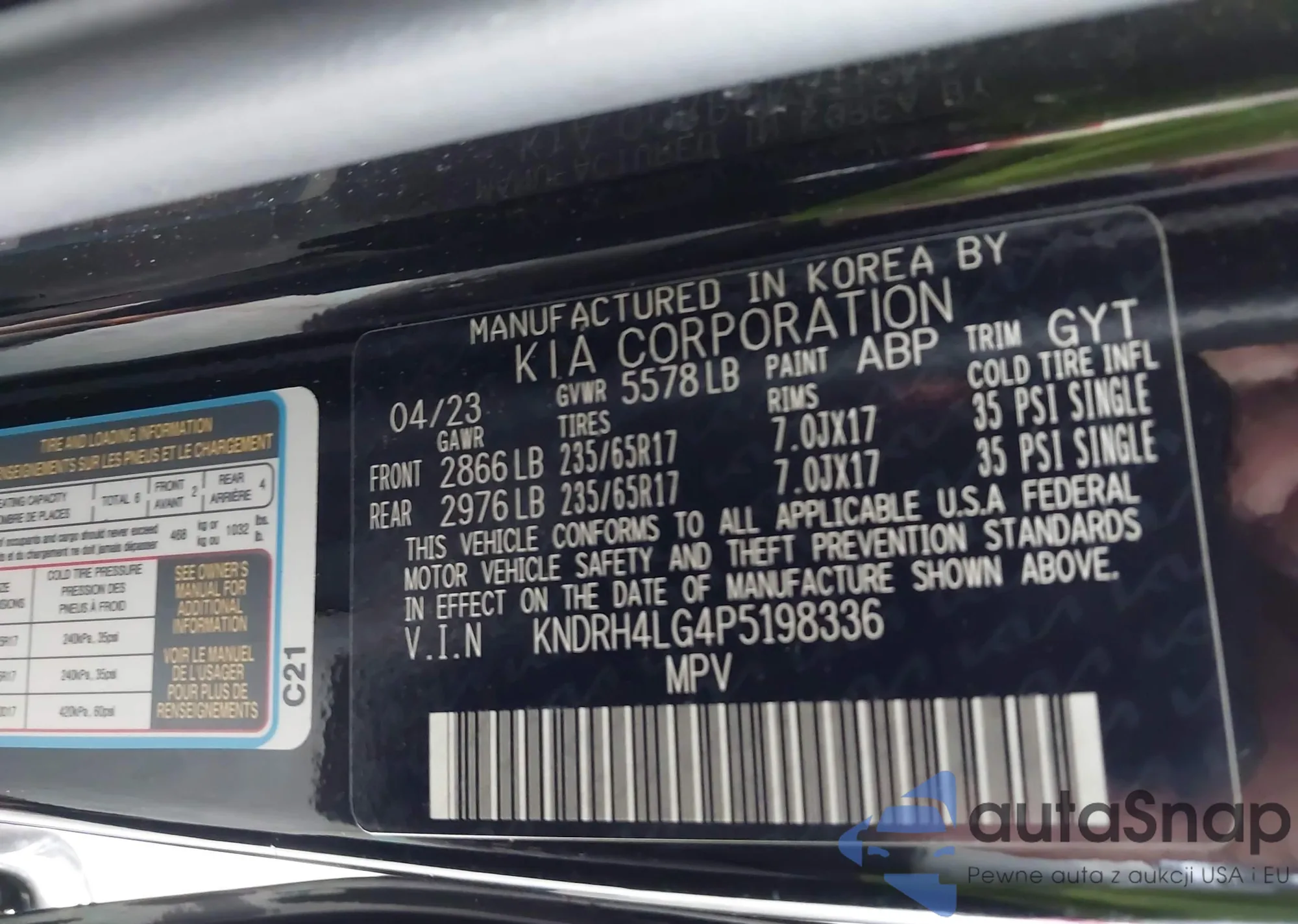 LOT: 42944068 VIN: KNDRH4LG4P5198336