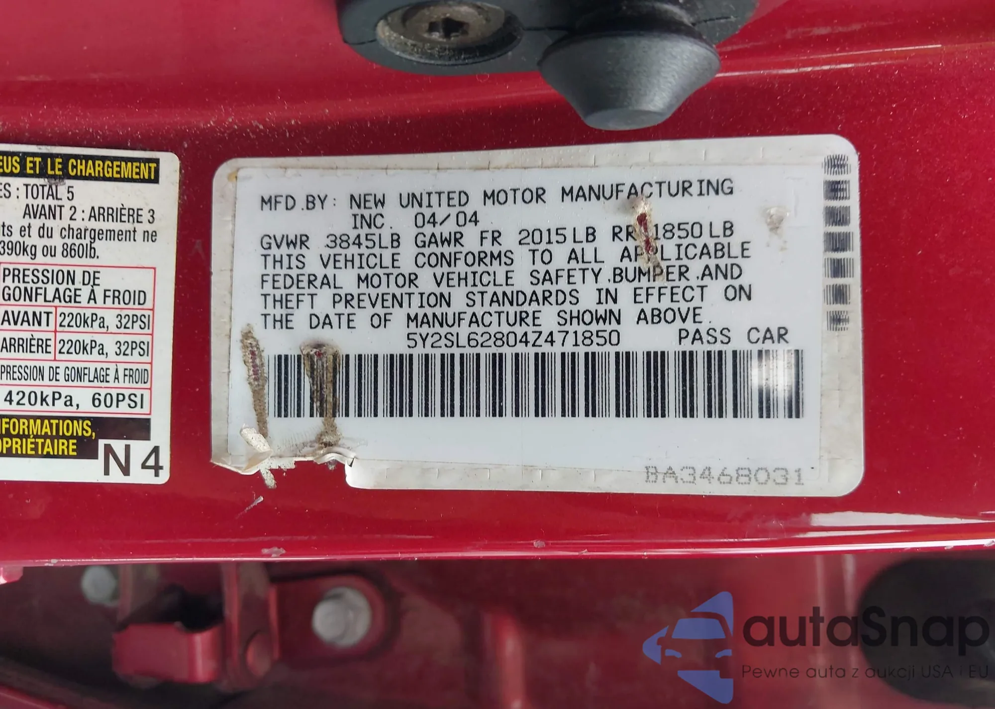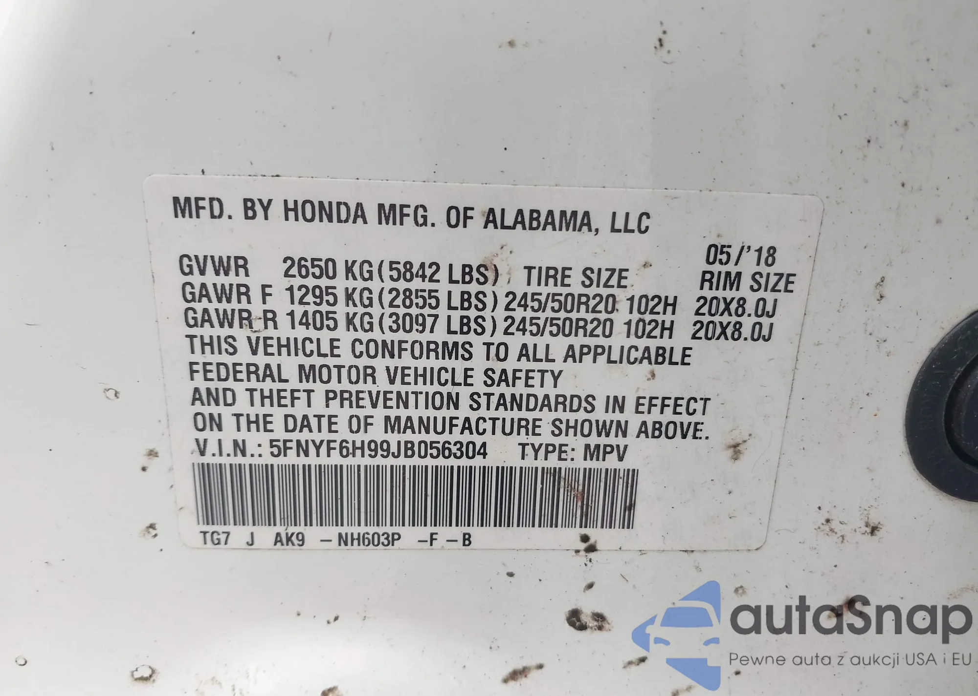 LOT: 42993796 VIN: 5J6YH28534L006042