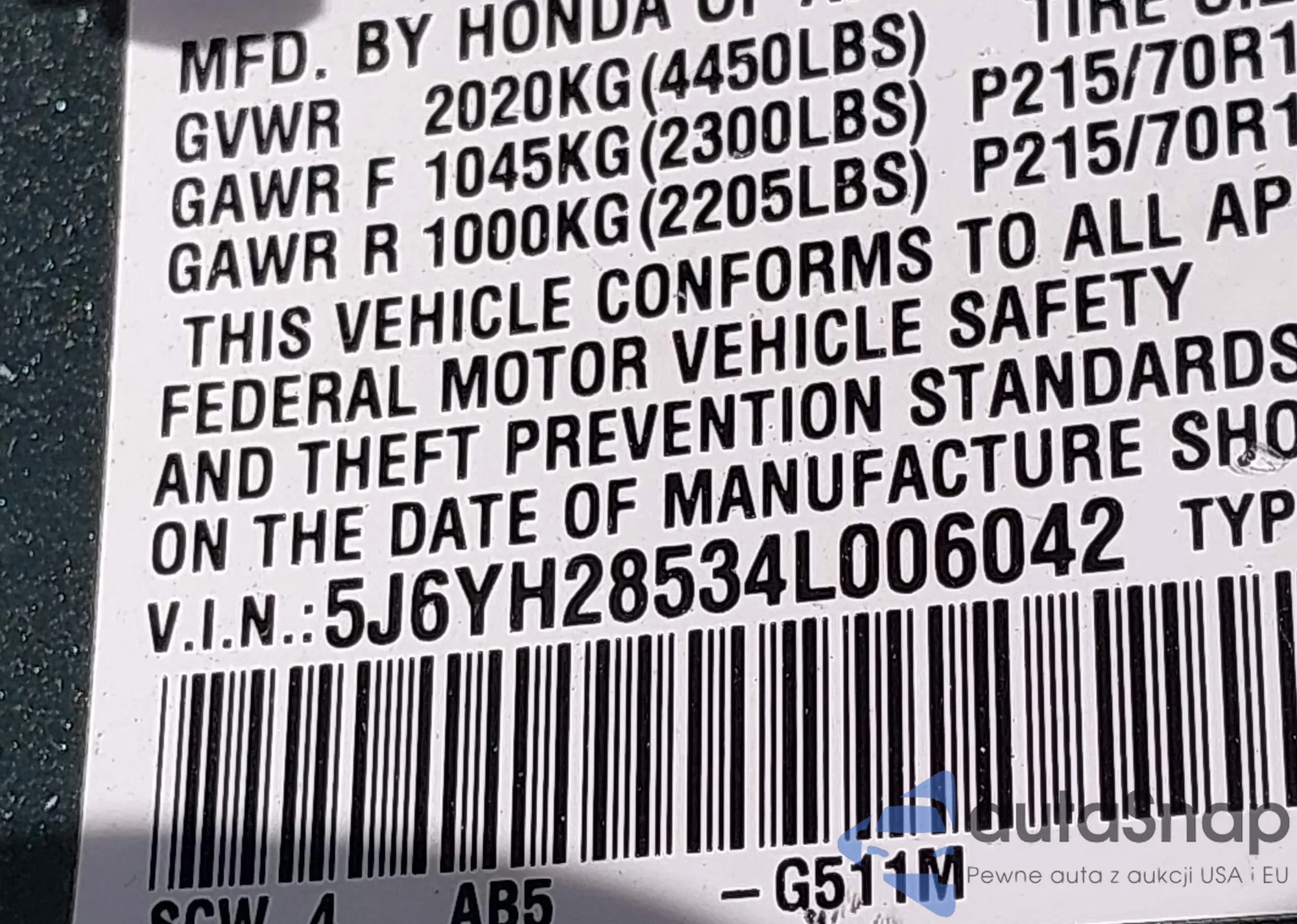 • VIN 5J6YH28534L006042