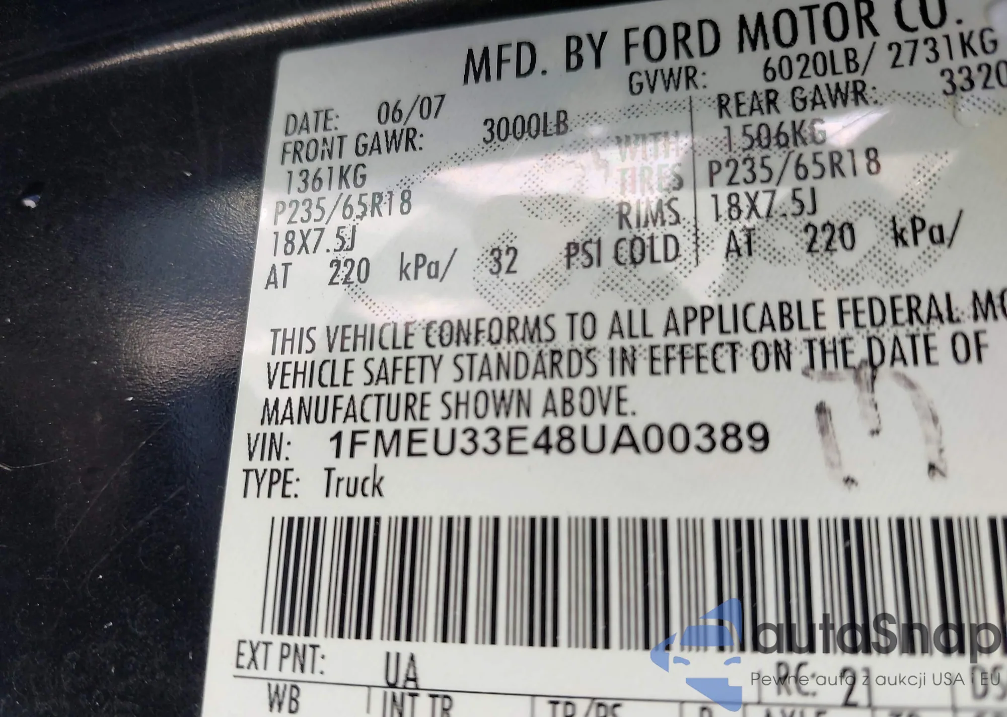 • VIN 1FMEU33E48UA00389