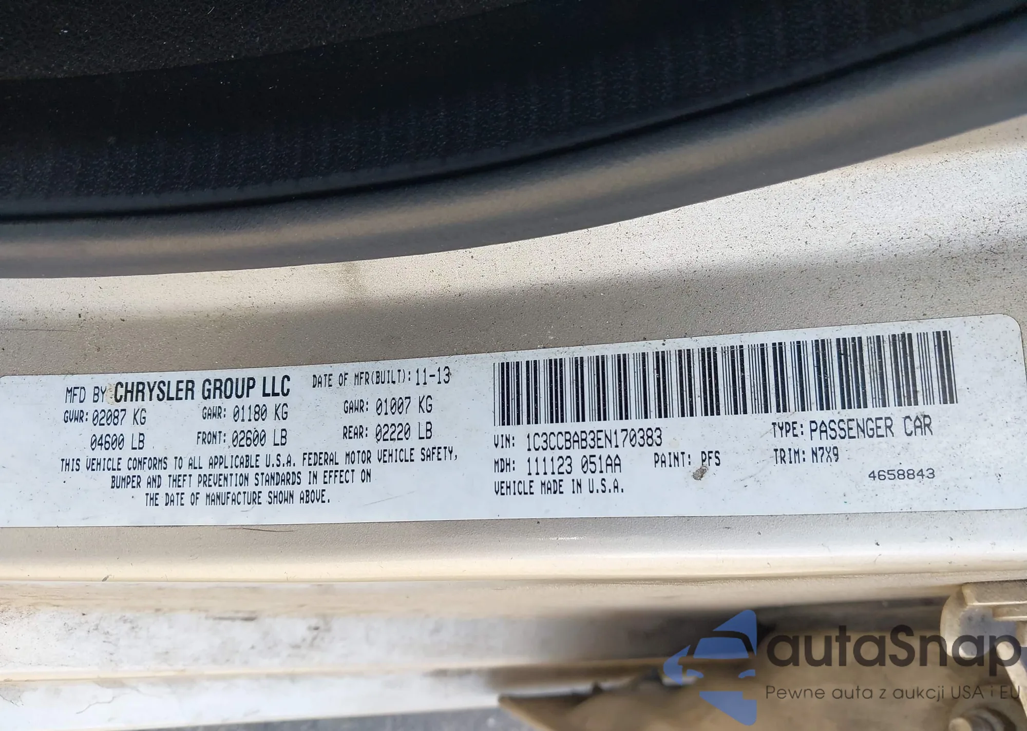 LOT: 43118320 VIN: 1C3CCBAB3EN170383