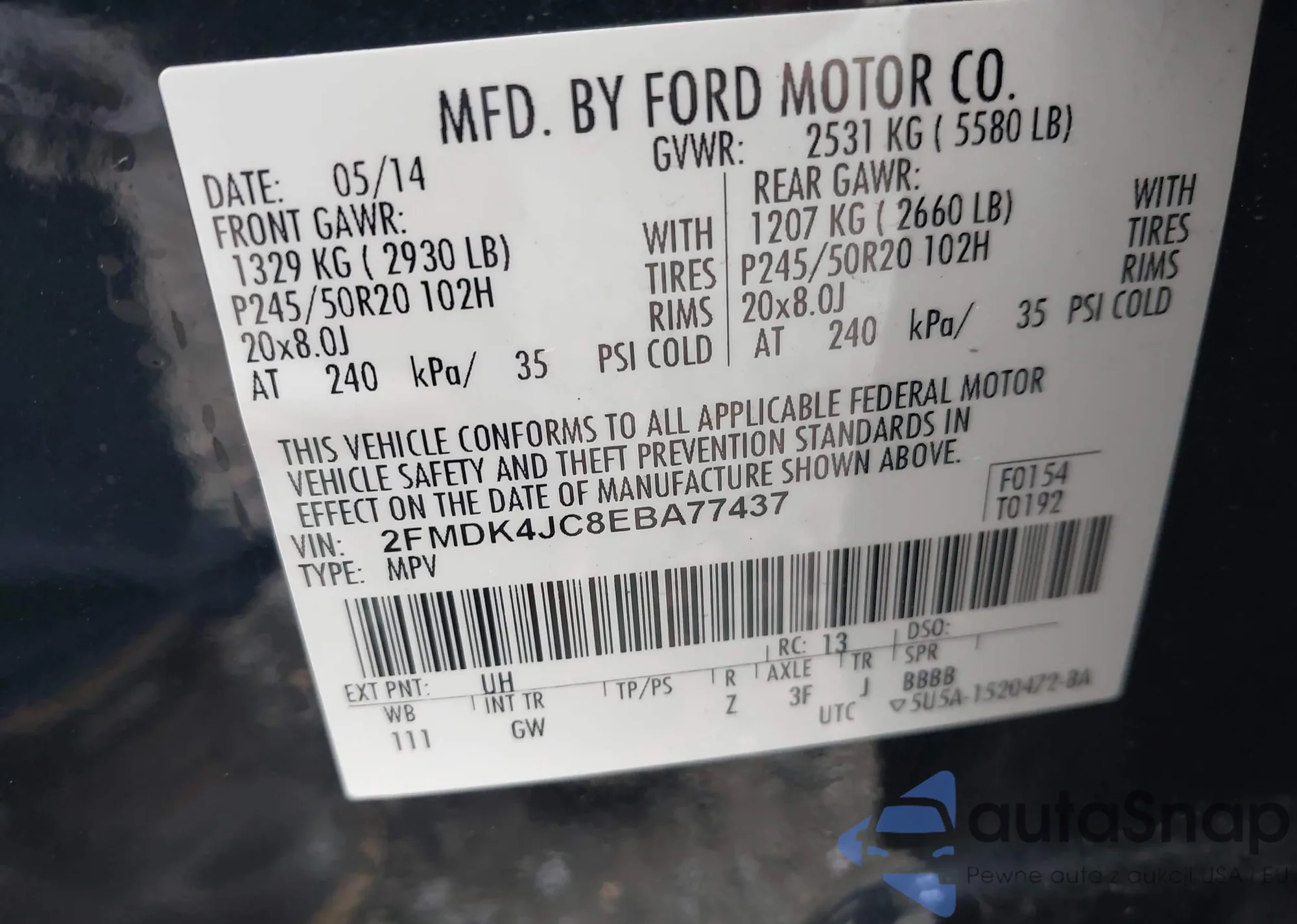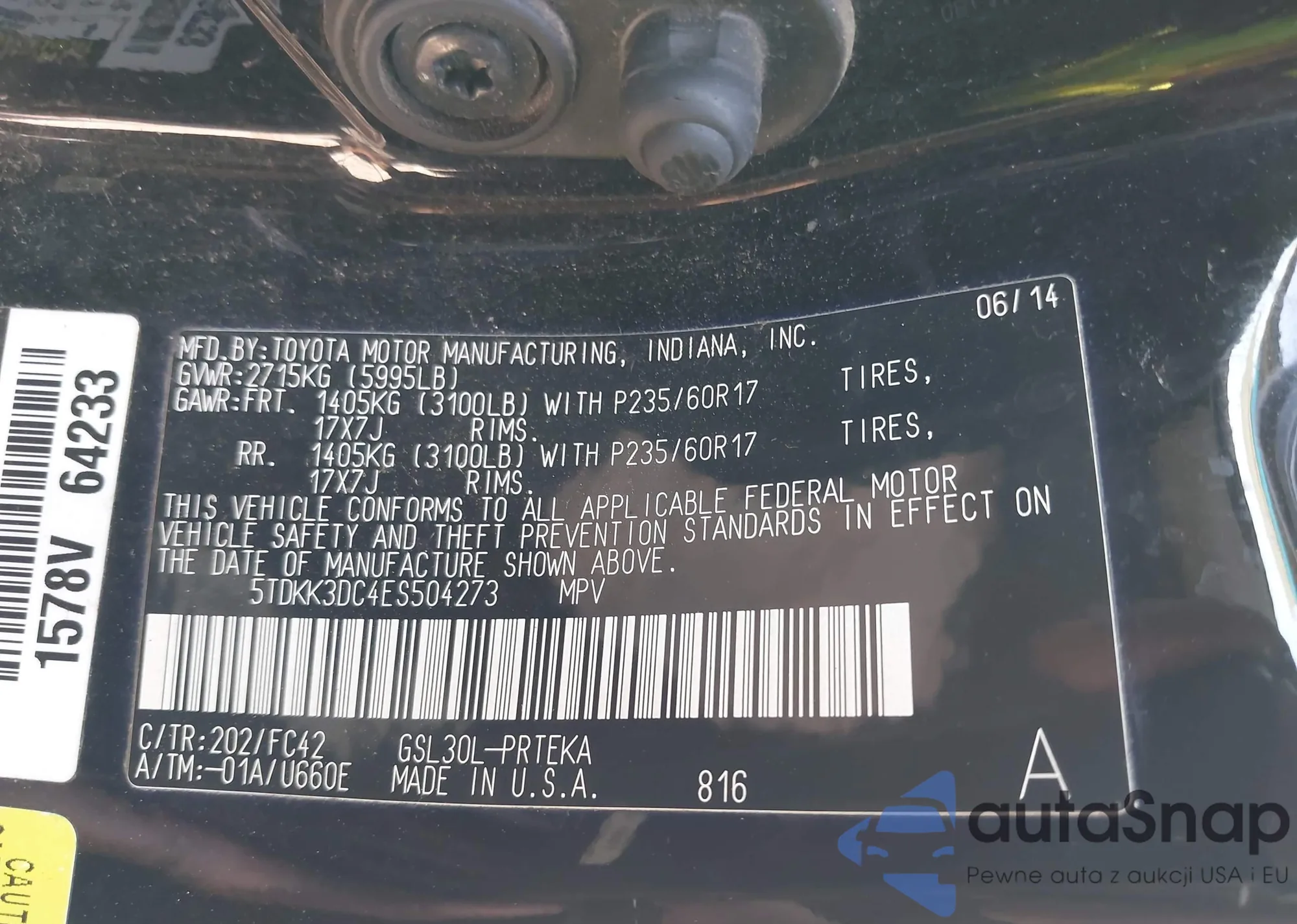LOT: 43080919 VIN: 5TDKK3DC4ES504273