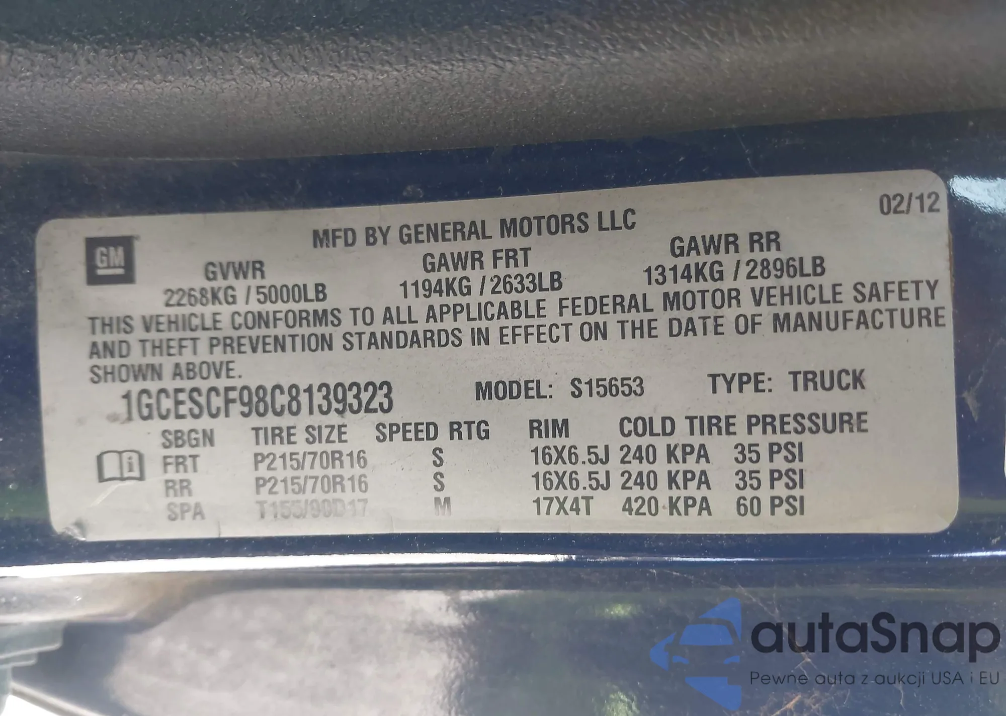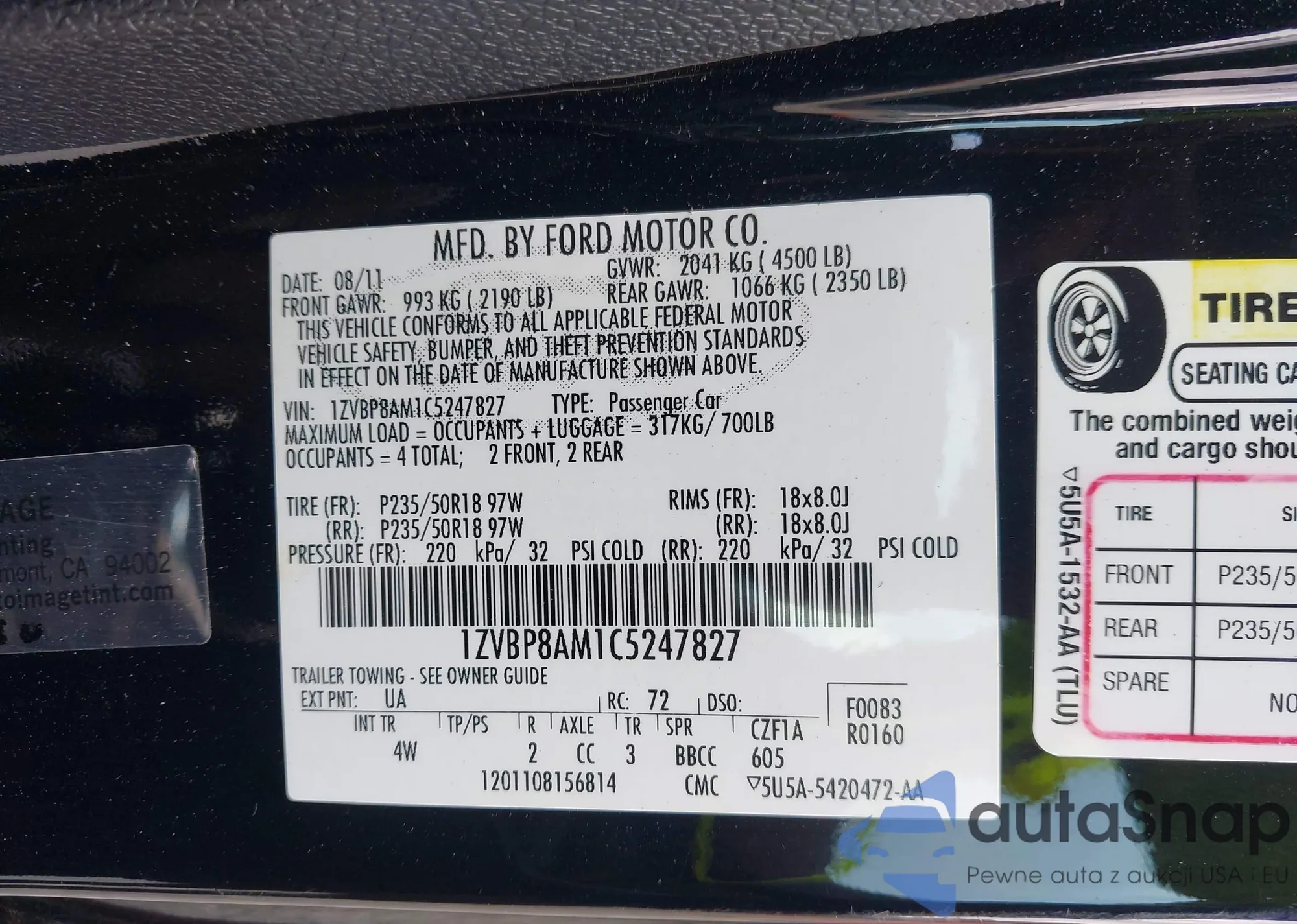 LOT: 43027889 VIN: 1ZVBP8AM1C5247827