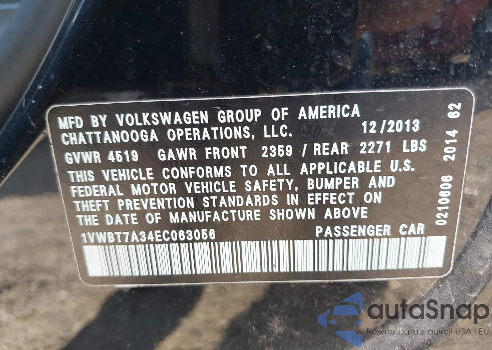• VIN 1VWBT7A34EC063056