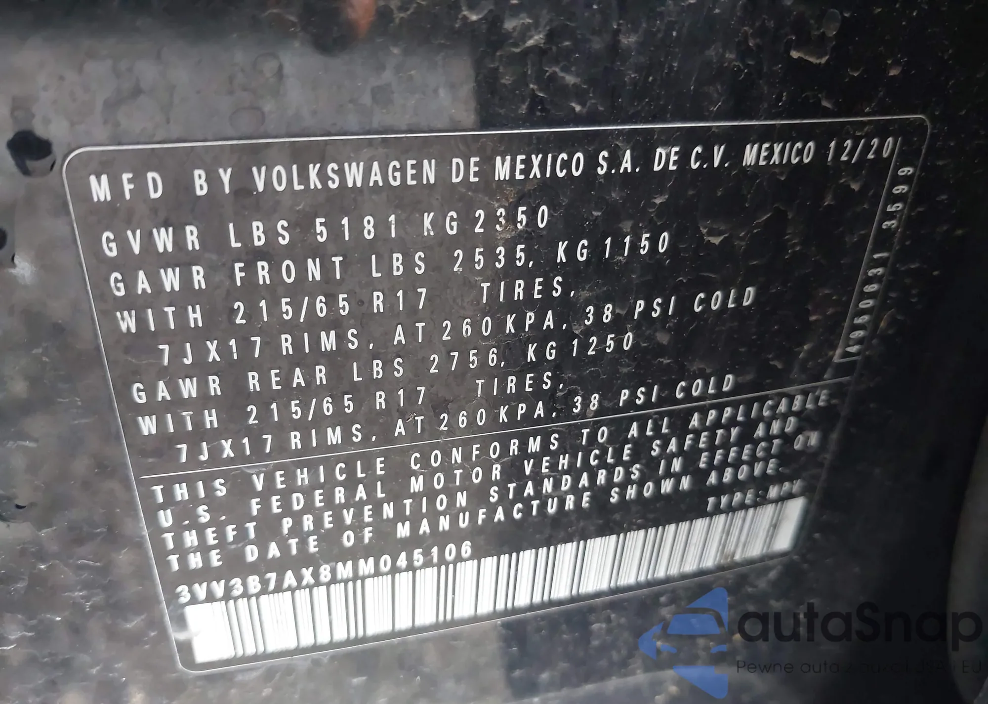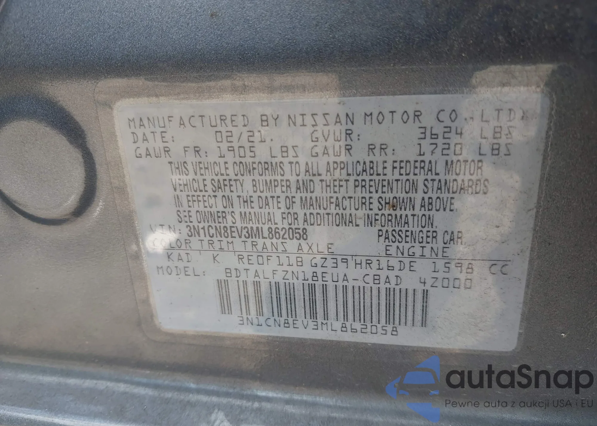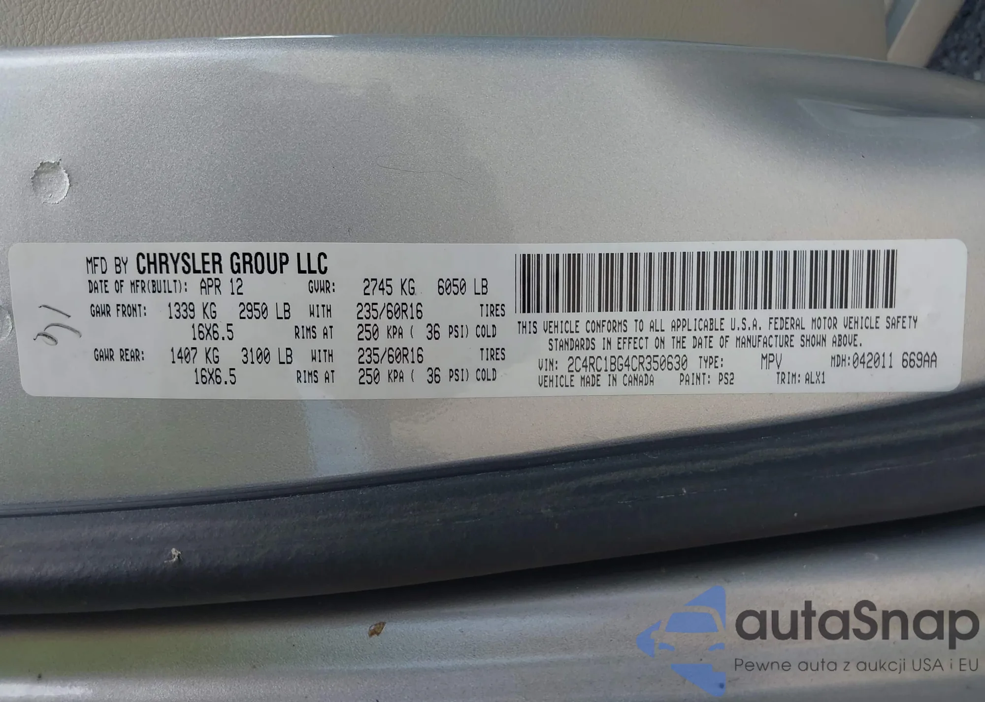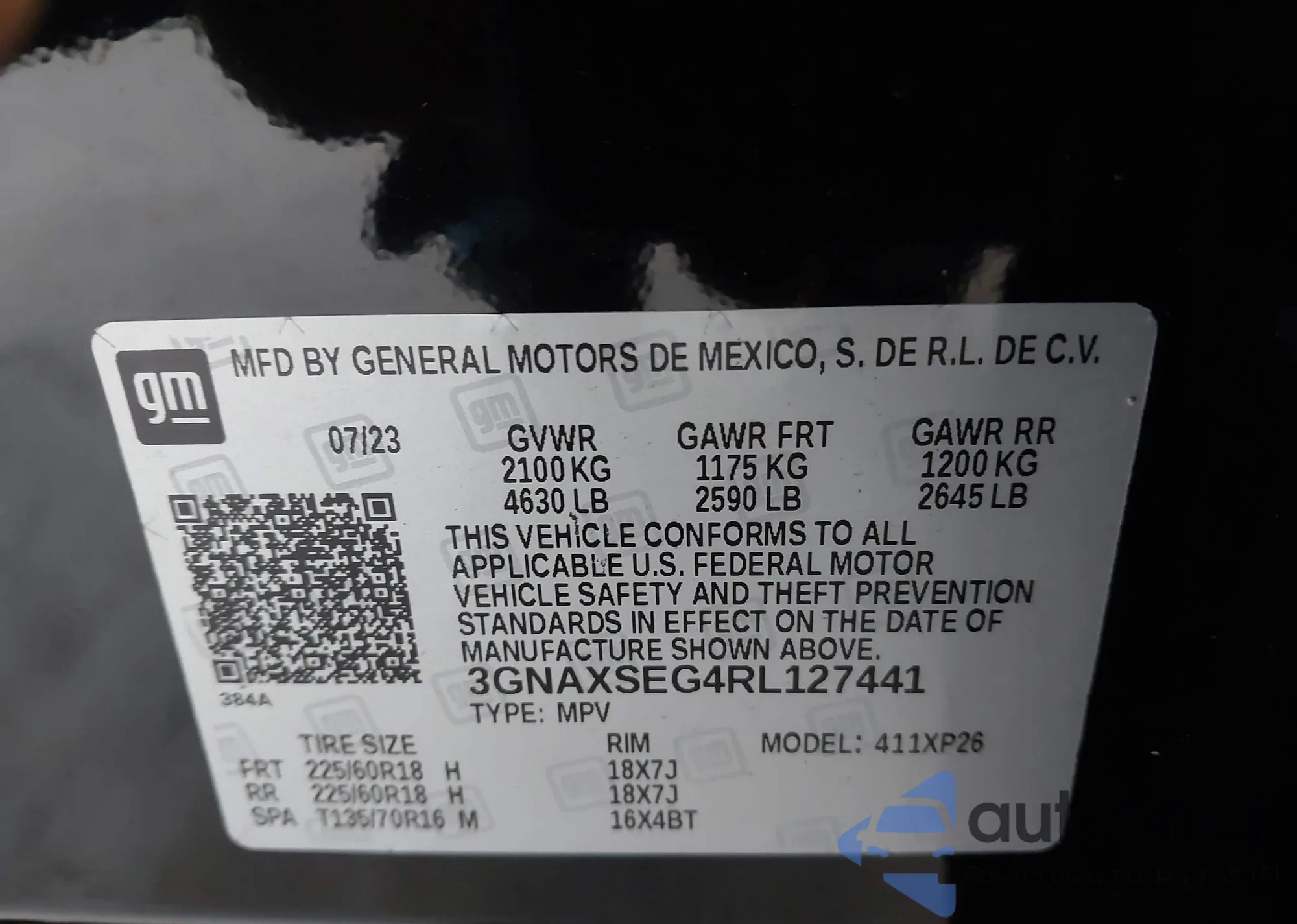 • VIN 3GNAXSEG4RL127441
