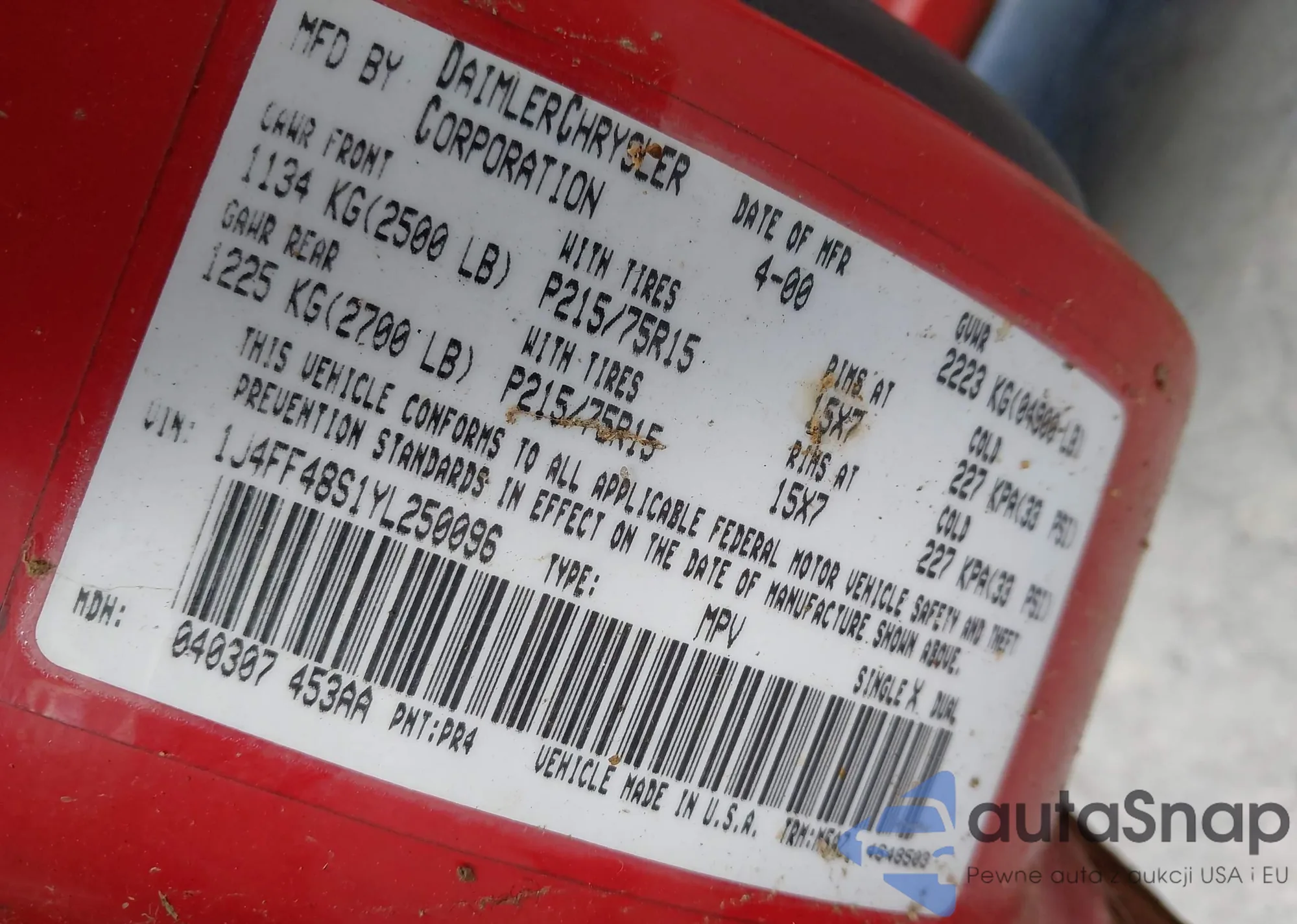 LOT: 42997596 VIN: 1J4GL48K72W146361